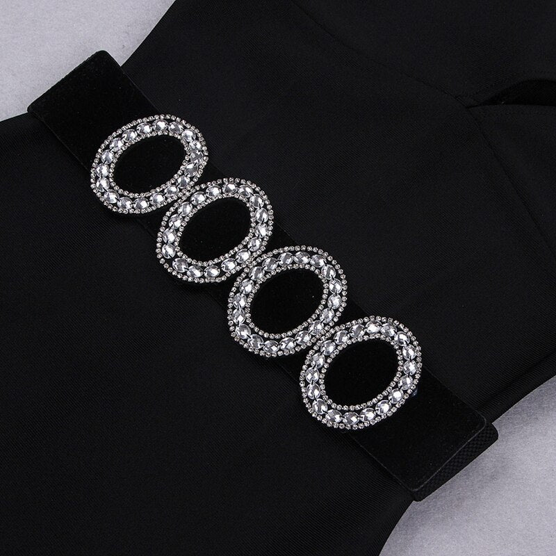 One Shoulder Long Sleeve Crystal BELT Mini Dress