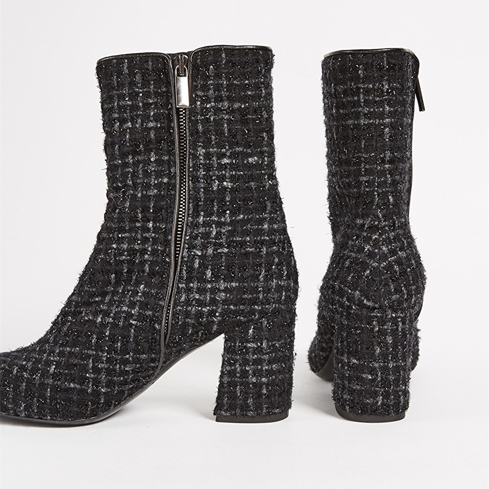 | Name | Black Tweed Round Toe Block Heel Boots Zipper Ankle Boots |