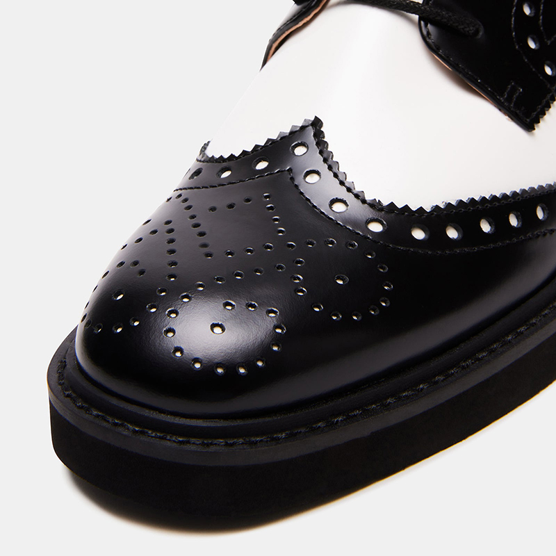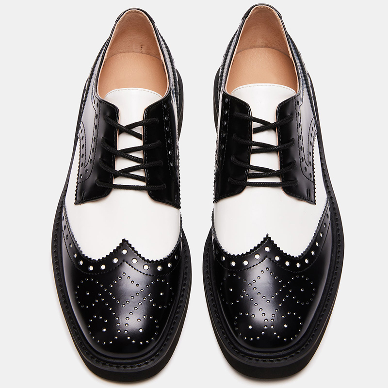 | Name | Black & White Block Heel Shoes Vintage Round Toe Lace Up Pump Loafers |