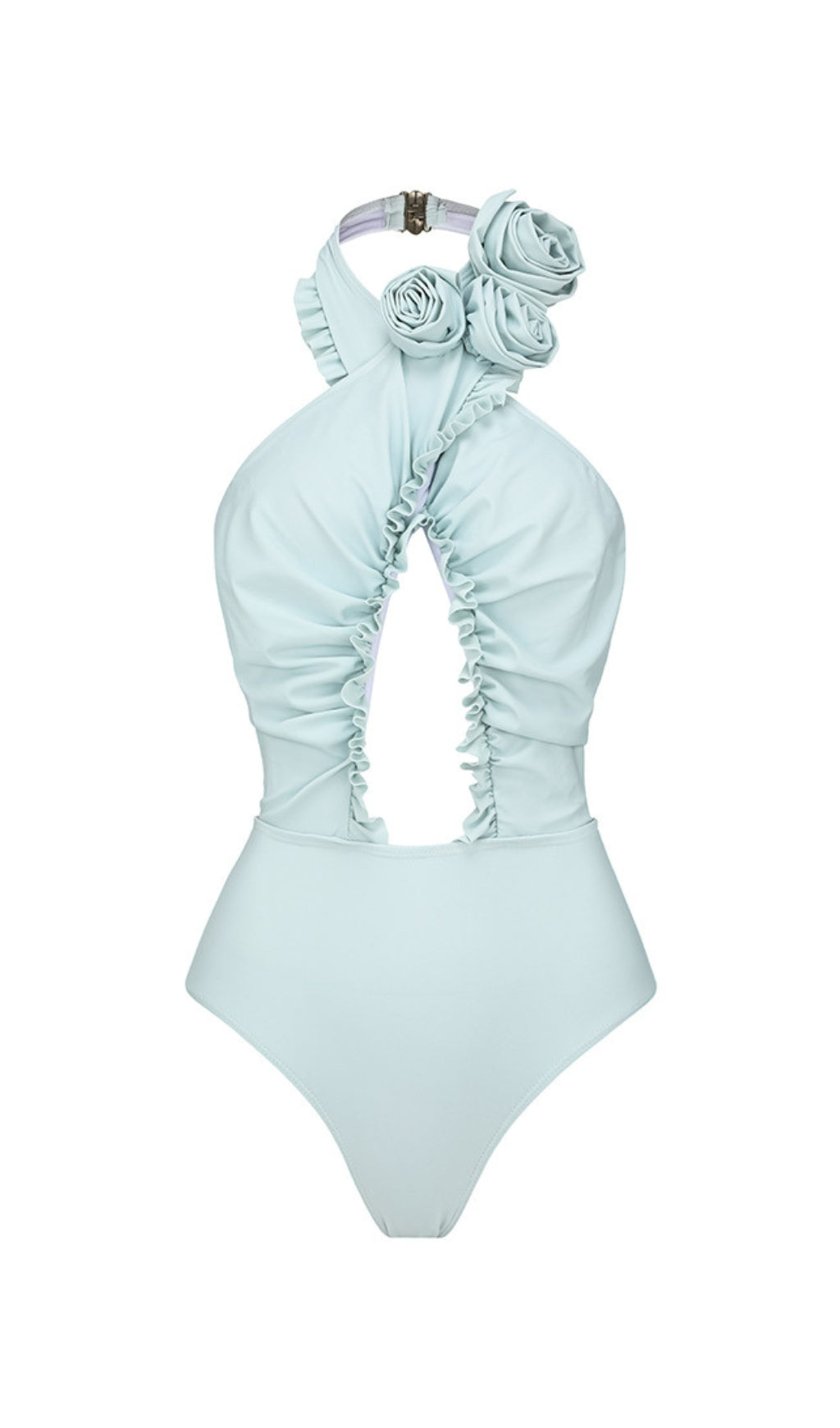 Blue Halter 3D Flower ONE Piece SwimSuit And SARONG