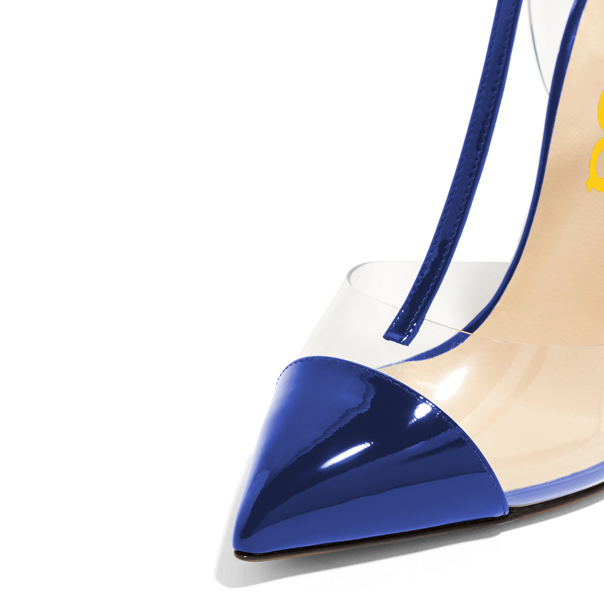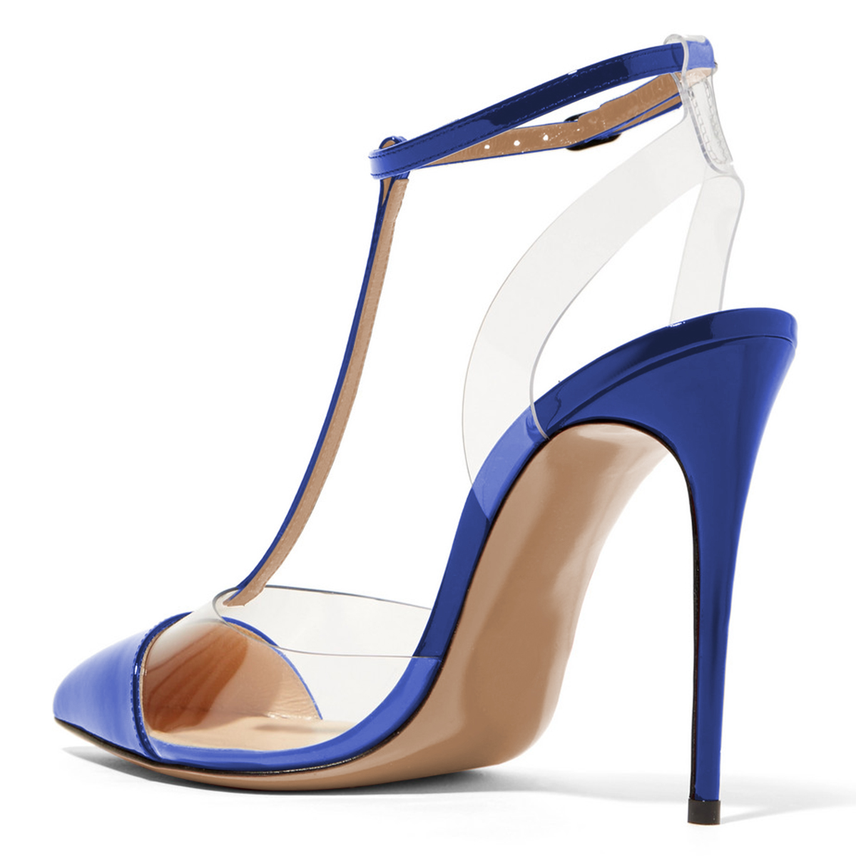 | Name | Blue T Strap Sandals Mirror Leather Ankle Strap transparent Sandals |