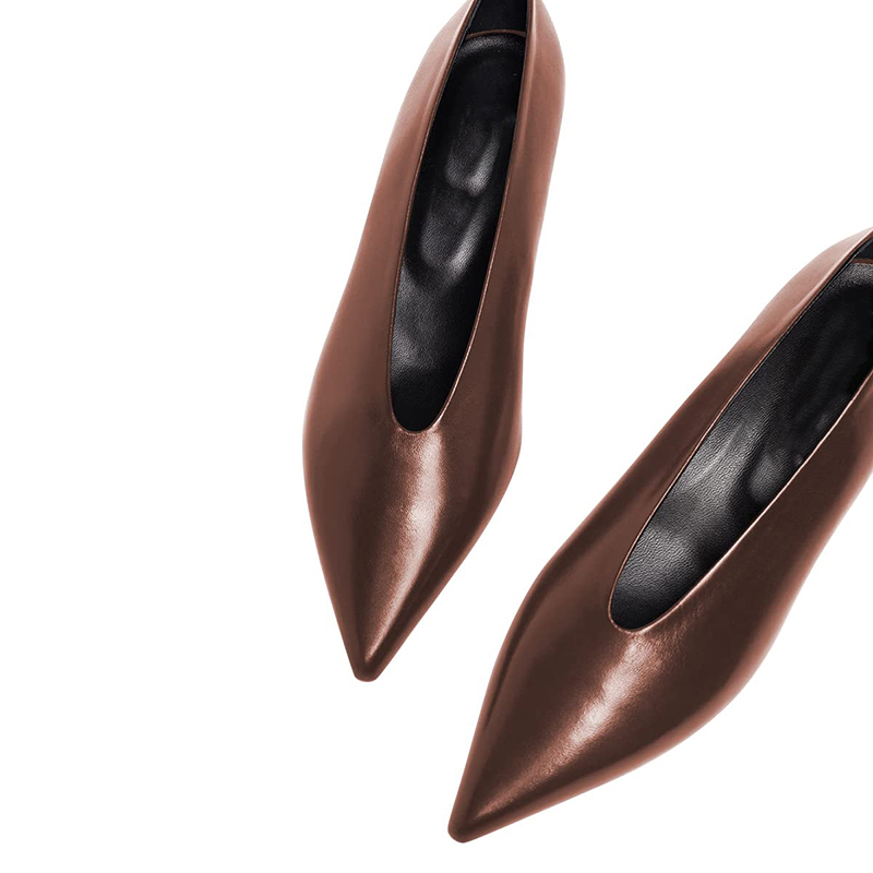 - The perfect blend of style and comfort for your office attire. With their sleek pointed toe design and elegant silhouette. these women's shoes exude sophistication and professionalism. The low kitten heels provide a subtle lift while ensuring all-day comfort. allowing you to stay on your feet without sacrificing style. Crafted from high-quality materials. these pumps offer durability and long-lasting wear. Whether you're attending meetings or heading out for business lunches. these brown low heel pumps are the ideal choice for any office setting. Step into confidence and elevate your work wardrobe with these timeless classics.