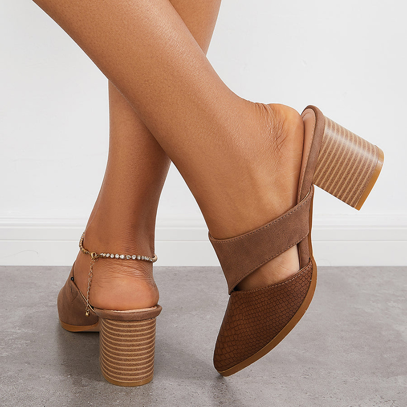 | Name | Brown Pointed Mule Heels Women's Vintage Loafers Block Heel Pumps |