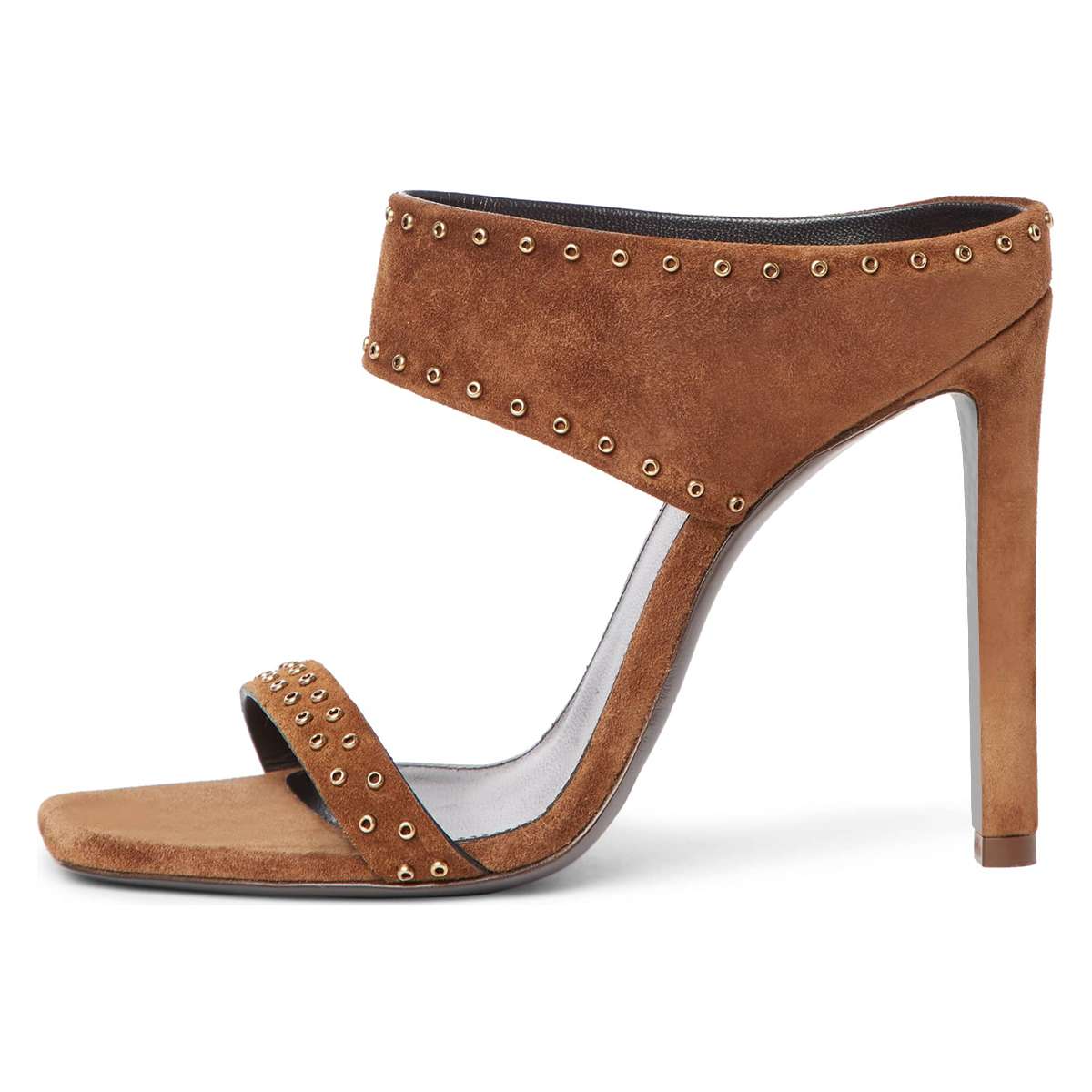 | Name | Brown Vegan Suede Open Toe Cut Out Mule Heels |