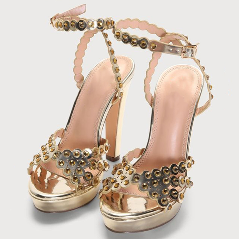 | Name | Classic Champagne Platform Sandals Women's Ankle Strap High Heels Party Shoes |