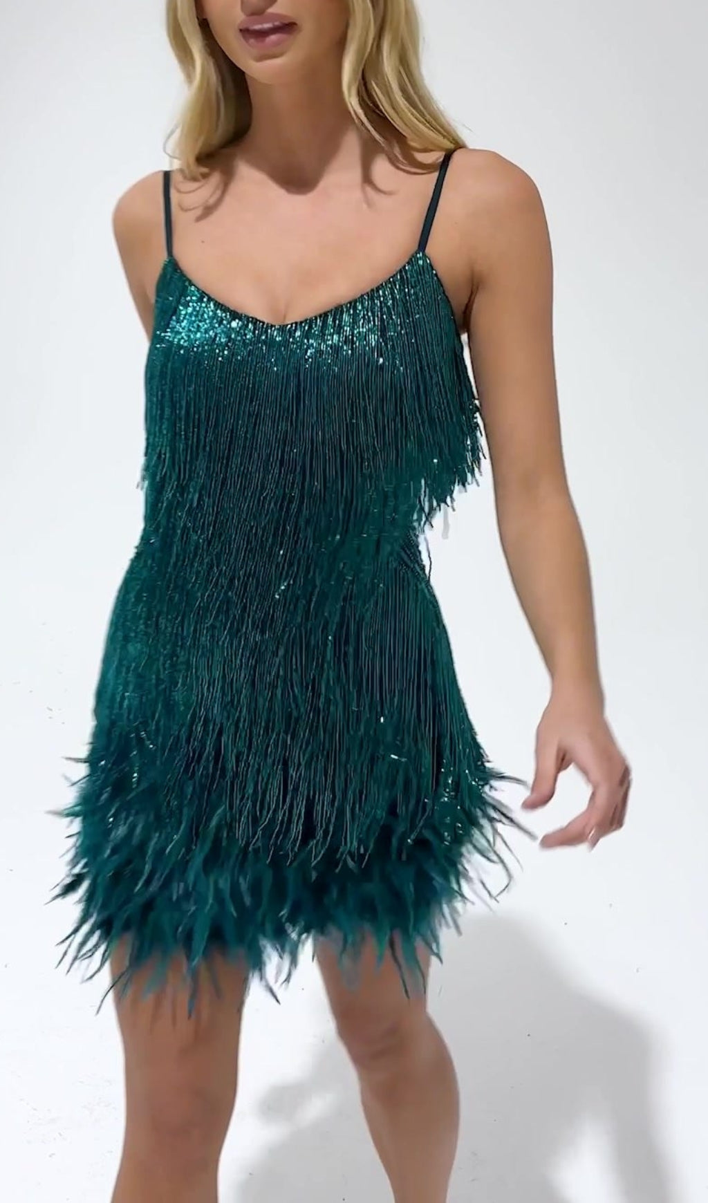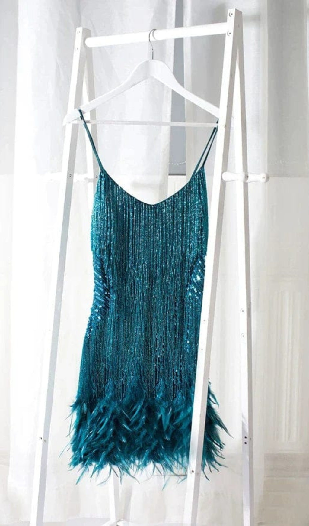 If you want to be a sexier. more attractive woman. check this out. You deserve this dress. The waist-in design shows off your beautiful figure. Feather design. let you become the crowd in the most dazzling sexy girl.Dark greenmakes you cute and charming.