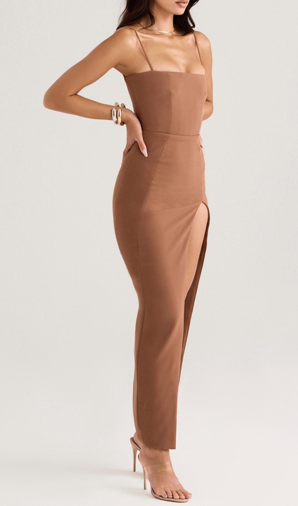 If you want to be a sexier. more attractive woman. check this out. You deserve this dress. The waist-in design shows off your beautiful figure. Slit design. let you become the most dazzling in the crowd of a sexy girl. Brown colors make you noble and elegant.it has a zip to the back for easy on.