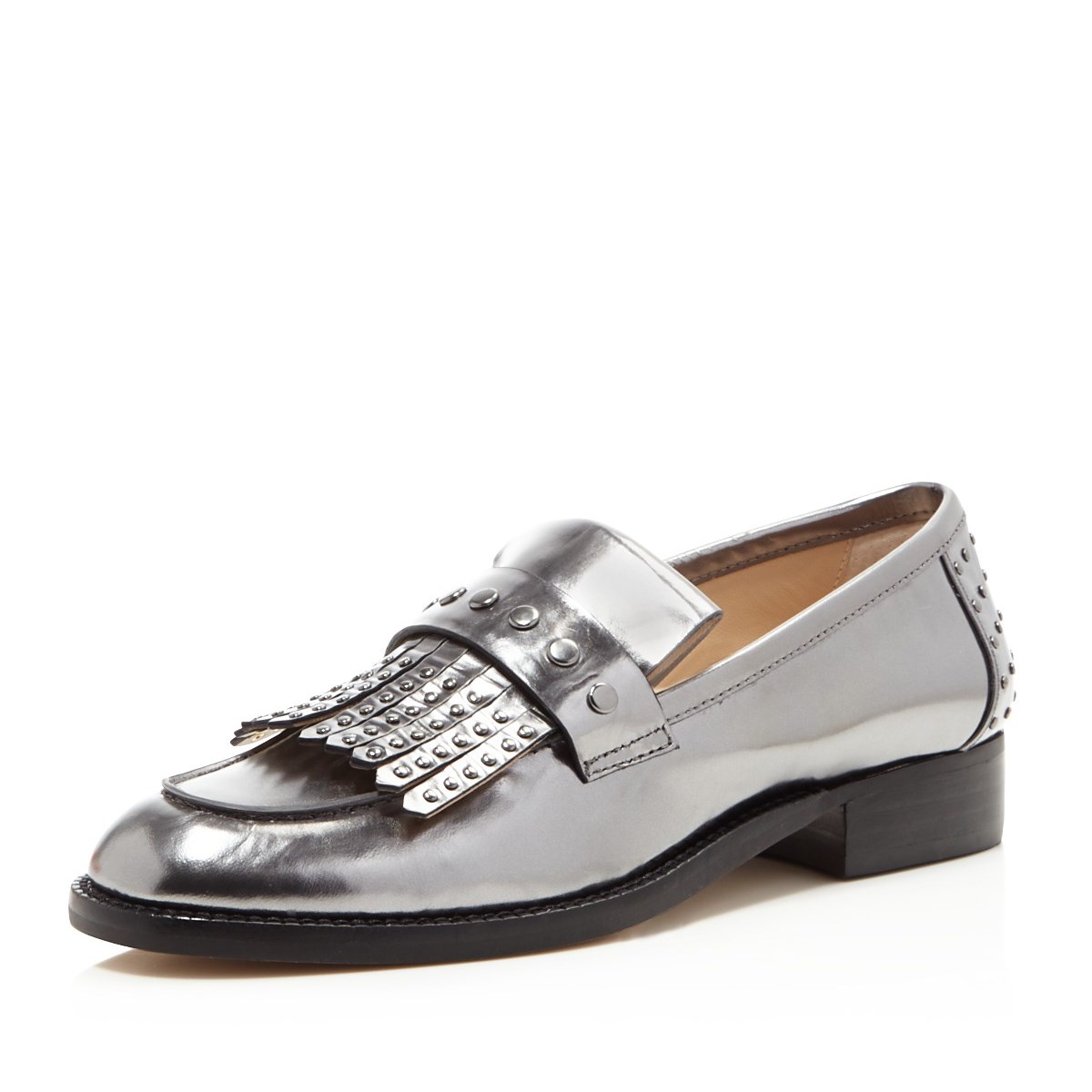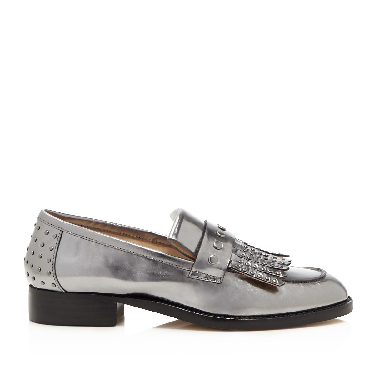 | Name | Dark Silver Round Toe Flats Fringe Patent Leather Loafers for Women |