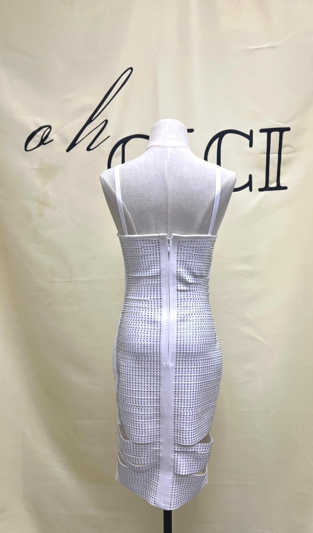 Update your new season wardrobe with our Diamante Mini Bandage Dress. The mini dress is constructed from our ever-famous stretch bandage fabric to caress your curves and create a perfect silhouette.The sweetheart bodice is adorned with sparkling diamante.Pair with your favorite heels and you'll be ready for date night.
