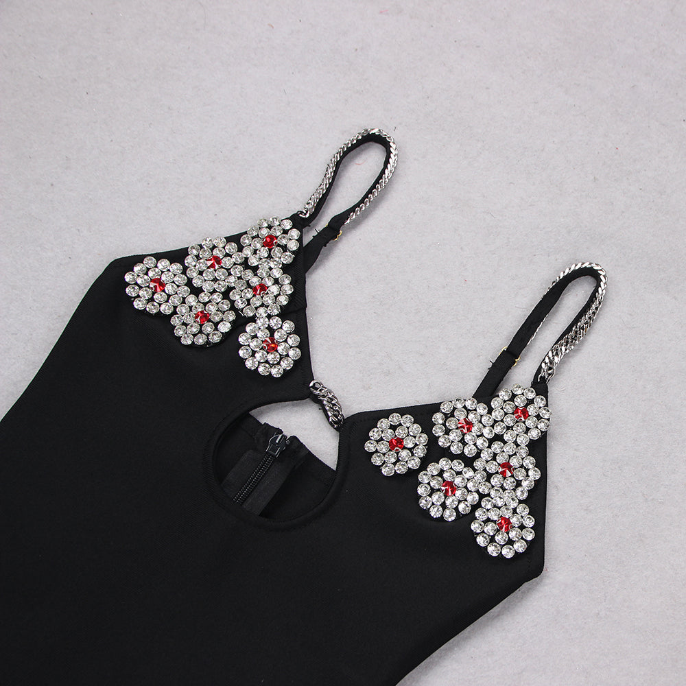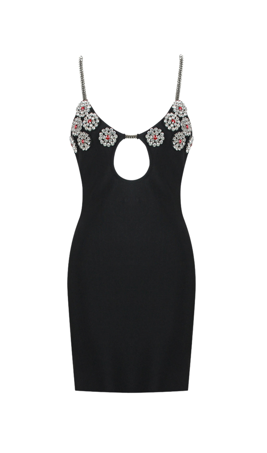 Crafted from a luxurious and stretchy fabric. this mini dress is designed to flatter your curves and enhance your silhouette. The diamond-shaped cutouts on the front and back of the dress add a touch of edginess and sophistication. while the long sleeves and high neckline offer a balance of coverage and sexiness.