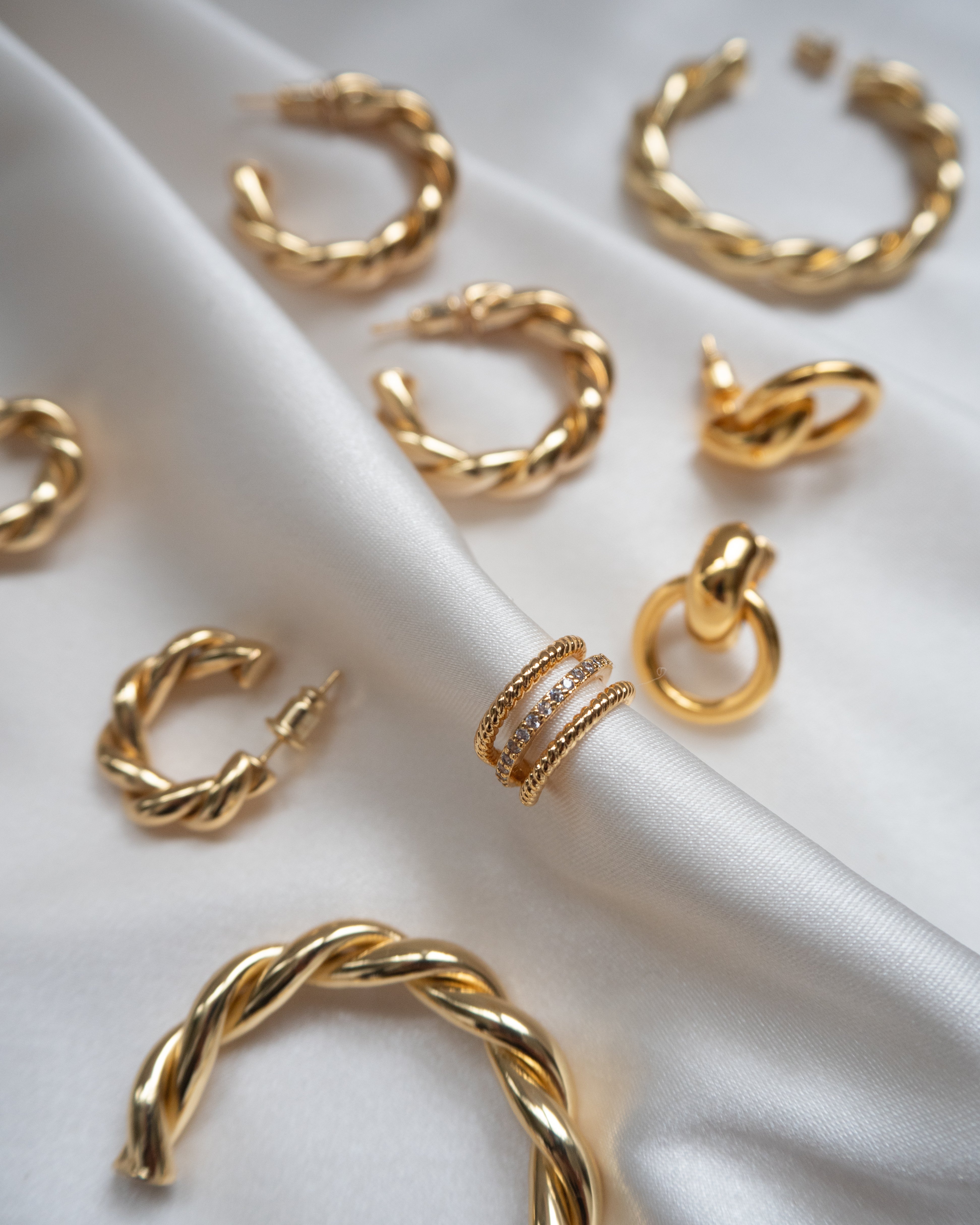 Gold Plated Textured Twist and Pave Crystal Ear Cuff