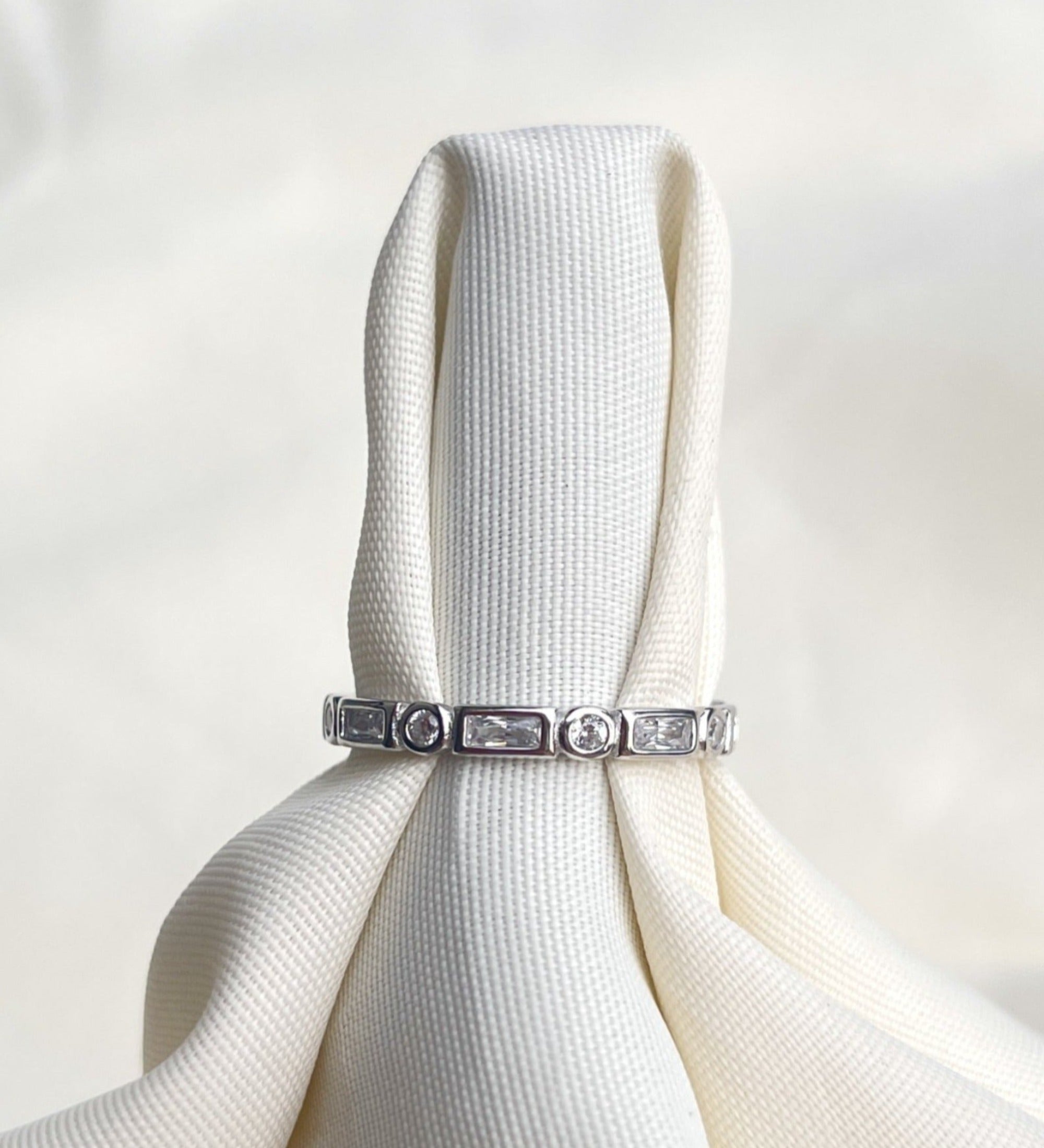 925 Sterling Silver Rectangle and Circle Crystal Band Ring