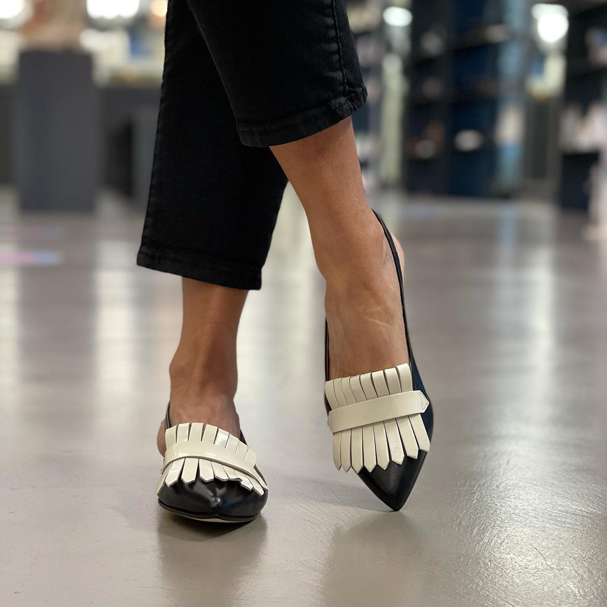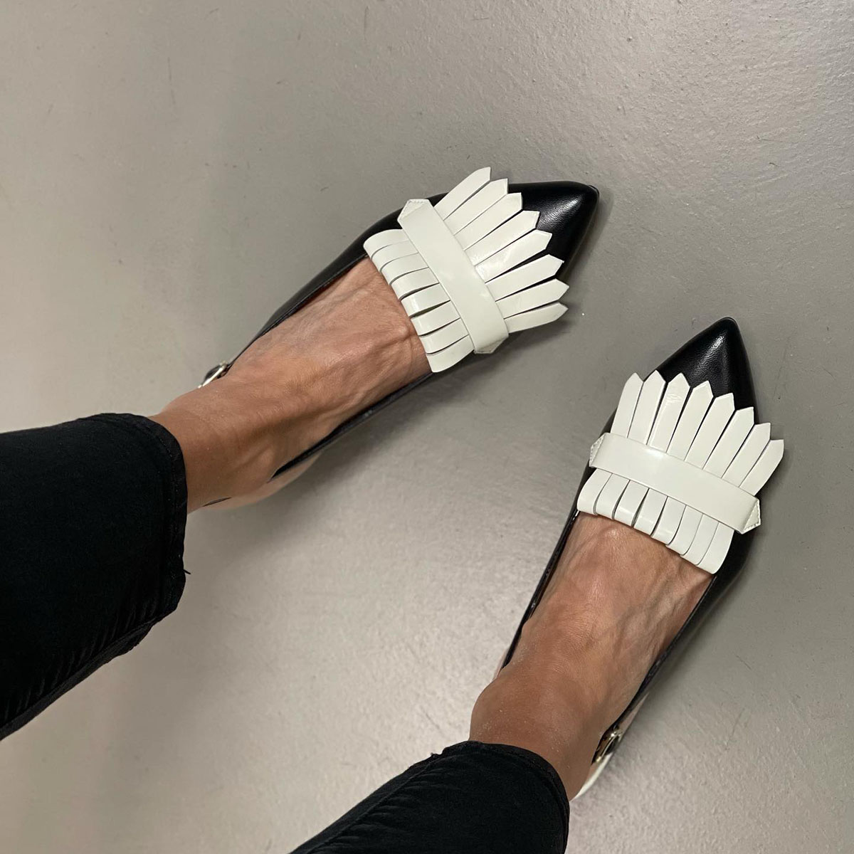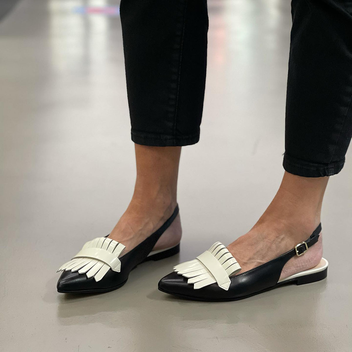 Are you still looking for an elegant and casual pair of flats? Then you can't miss this one-our fringed trim Slingback Strap retro flats. These flats are designed with a stylish fringed trim. adding a touch of elegance and sophistication to your outfit. The pointed toe design is both chic and classic. making them perfect for any occasion. The slingback strap design ensures a secure and comfortable fit. and the flat heel provides added support and stability. These flats are made from high-quality materials. ensuring that they are durable and long-lasting. So why wait? Add this flats to your shoe collection and step out in style!