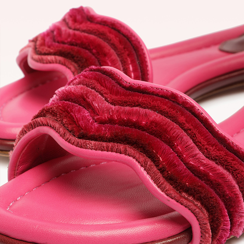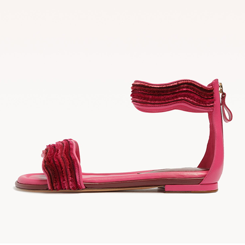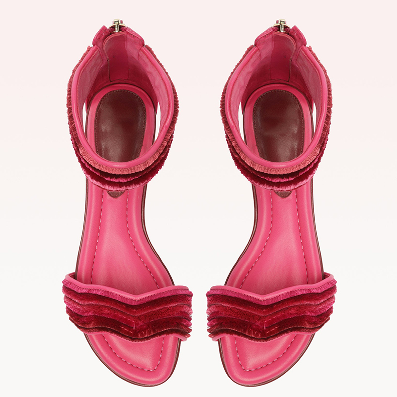 | Name | Fuchsia Open Toe Sandal Women's Classic Ankle Strap Flats Velvet Shoes |