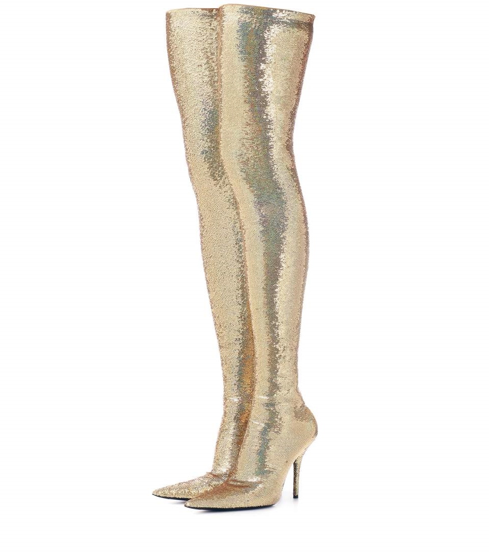| Name | Gold Sequin Boots Pointy Toe Thigh High Party Long Boots |