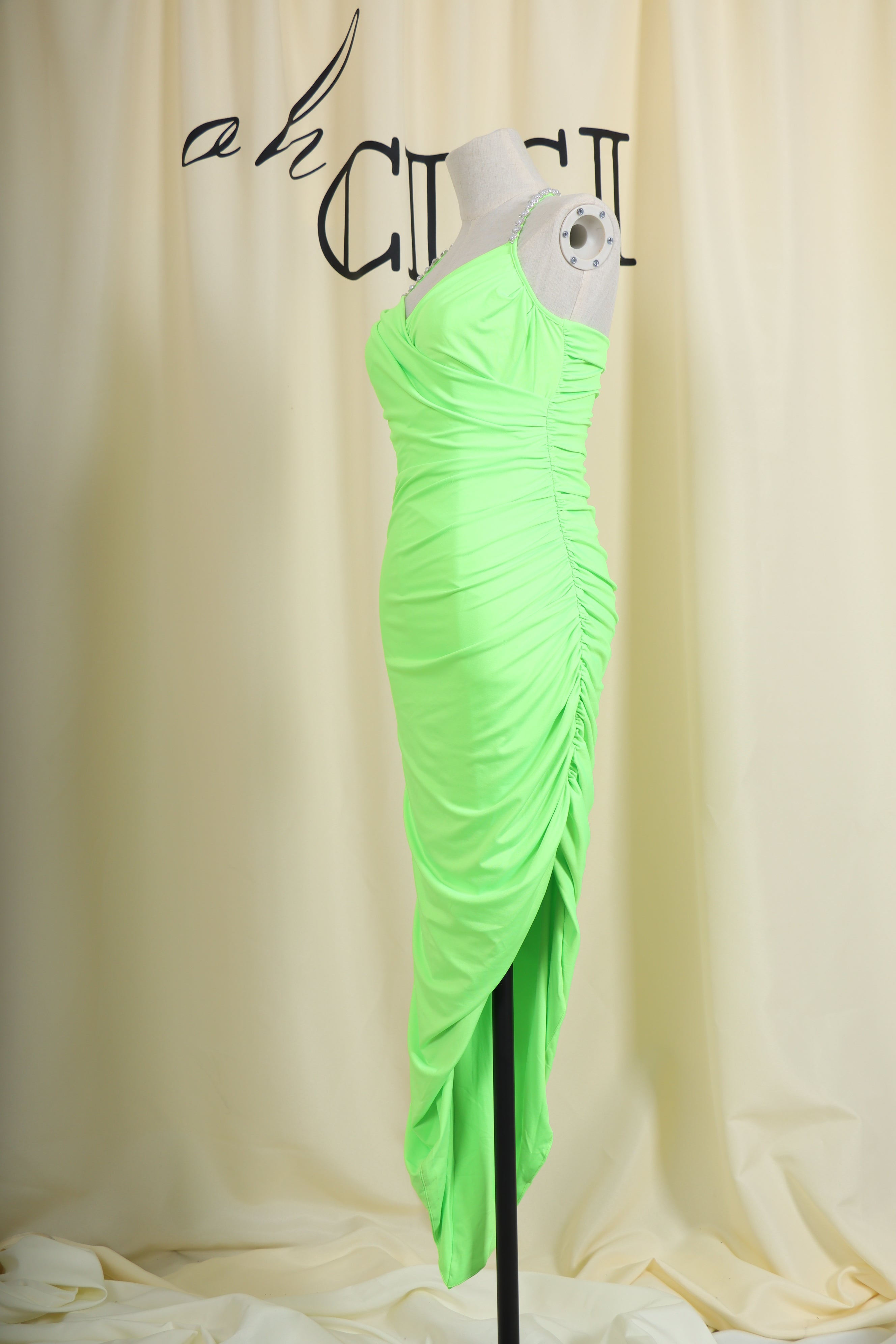 Update your new season wardrobe with our Green Halter Ruched Midi Dress.Designed with a sculpting figure-hugging fit and flattering ruching. Theasymmetrical cut at the hem creates a unique style.Pair with your favorite heels and you'll be ready for date night.