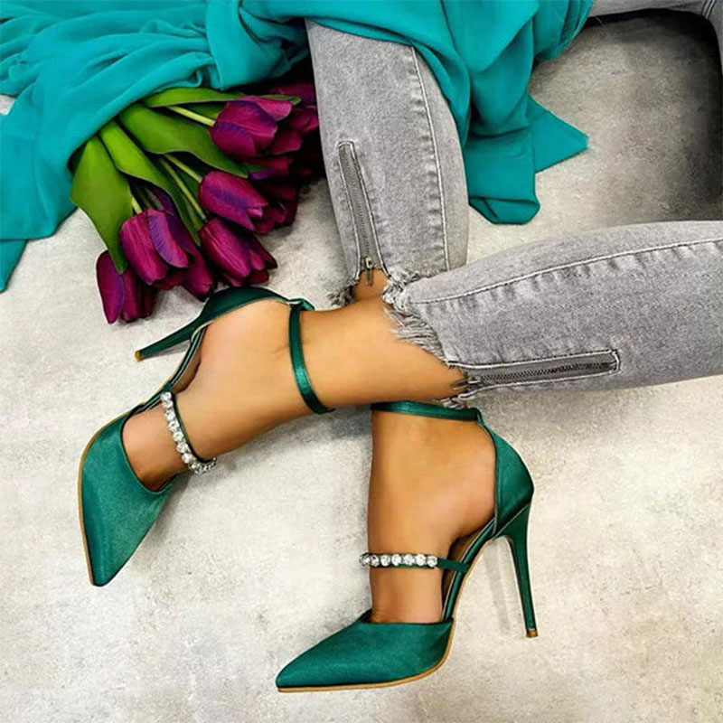 | Name | Green Pointy Toe Stiletto Heels Rhinestones Shoes Ankle Strap Pumps |