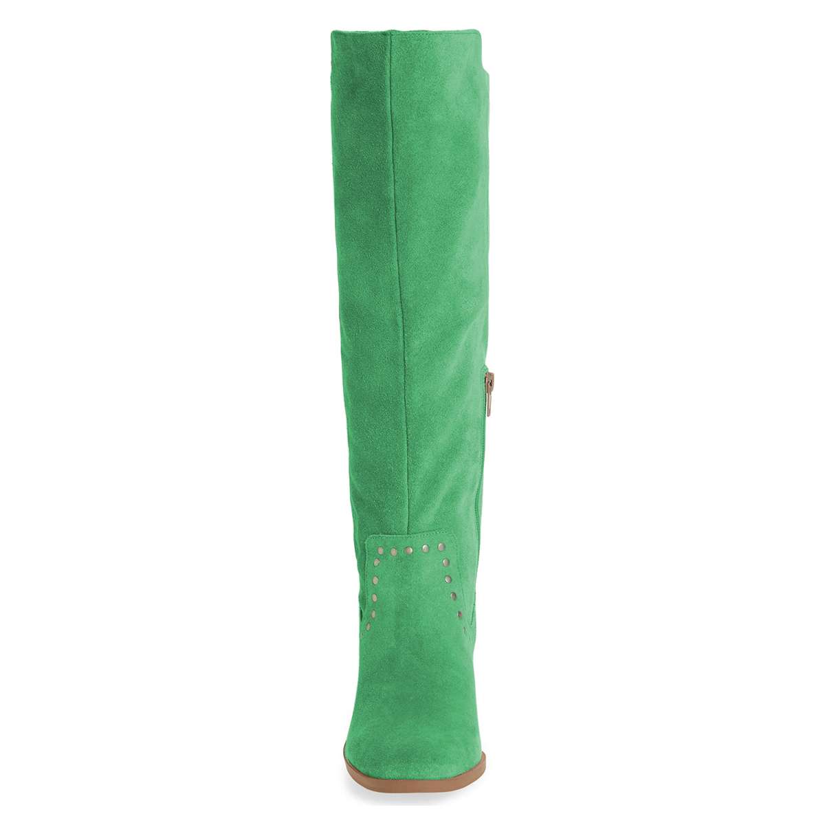 | Name | Green Vegan Suede Studs Knee Boots Knee-high Boots |