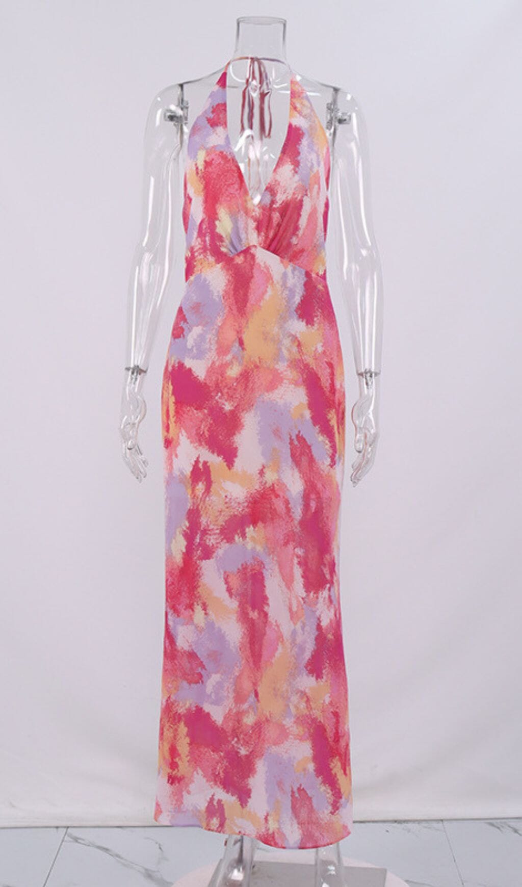Get ready to turn heads with the Halter Floral Maxi Dress in Pink. This stunning dress features a vibrant floral print that is perfect for the season. The halter neck and open back design add a touch of elegance. while the flowy maxi length creates a romantic and feminine look. Perfect for weddings. parties. and other special occasions. this dress will make you feel confident and beautiful.
