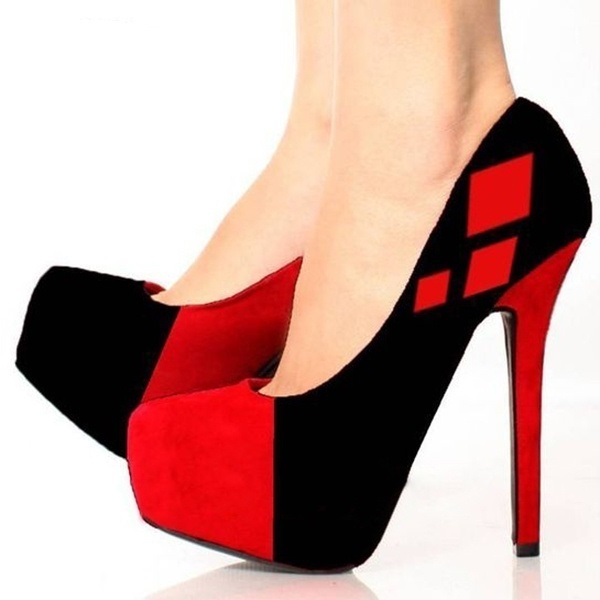 | Name | Harley Quinn Vegan Suede Red&Black Halloween Platform Heels Pumps |