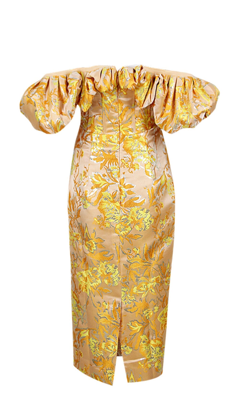 Crafted from high-quality jacquard fabric. this dress boasts a luxurious texture and a flattering fit that hugs your curves in all the right places. The off-shoulder design adds a touch of sexiness to the classic midi silhouette. while the sweetheart neckline and boned bodice offer support and structure for a flawless look.