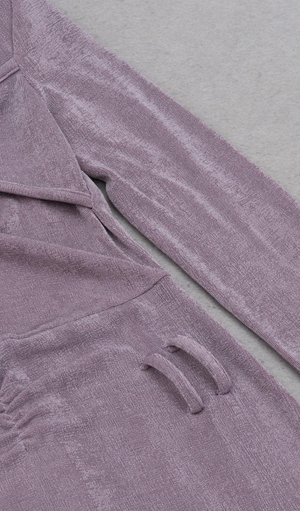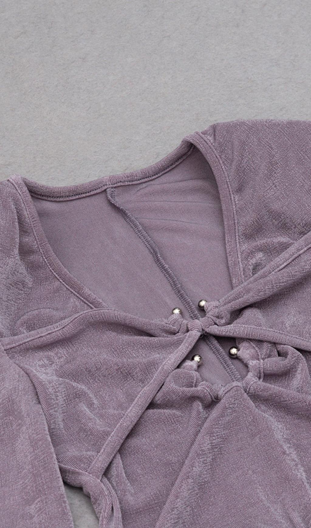 It's the ruching for us. Our pretty. feminine Knit Cutout Long Sleeves Midi Dress in Purplethat'll hug your curves.Pair with your favourite heels and you'll be ready for date night.