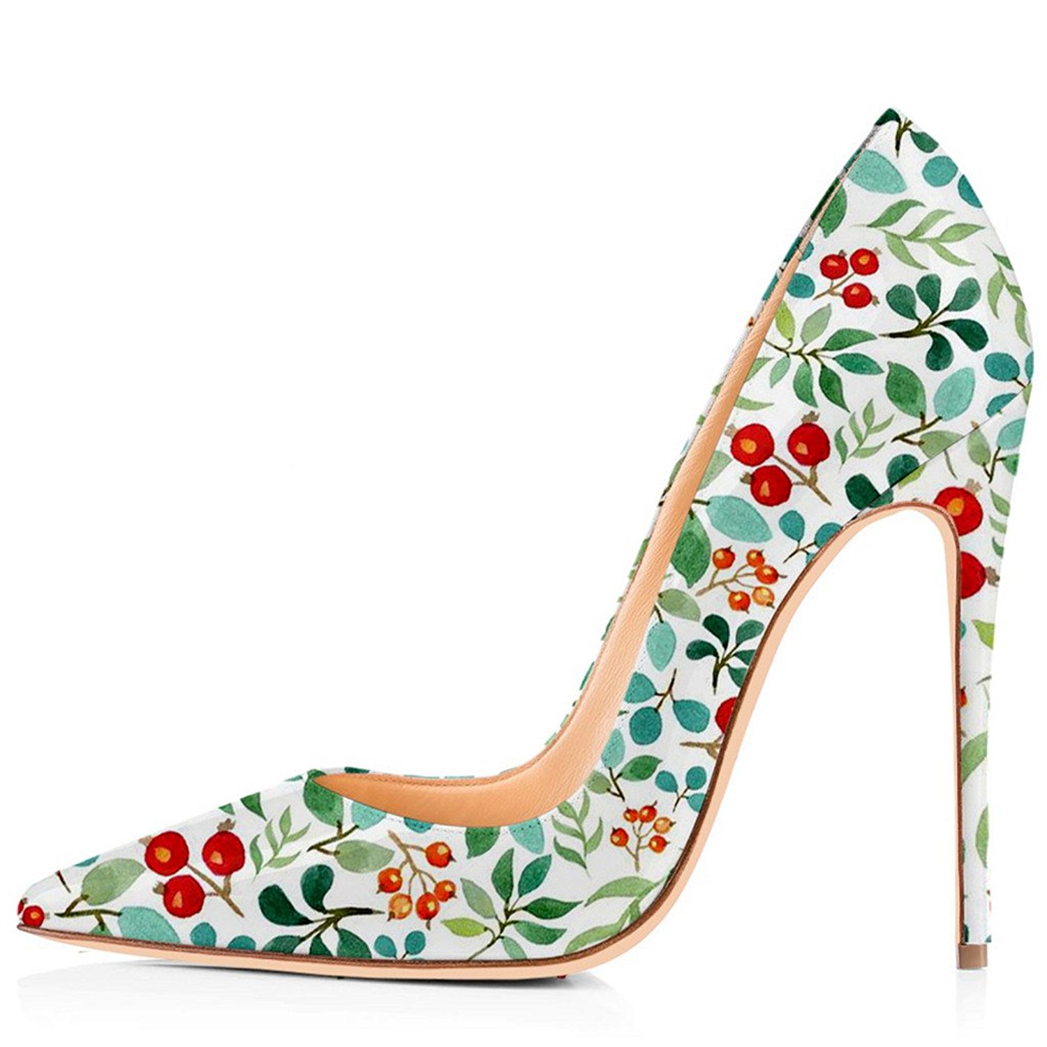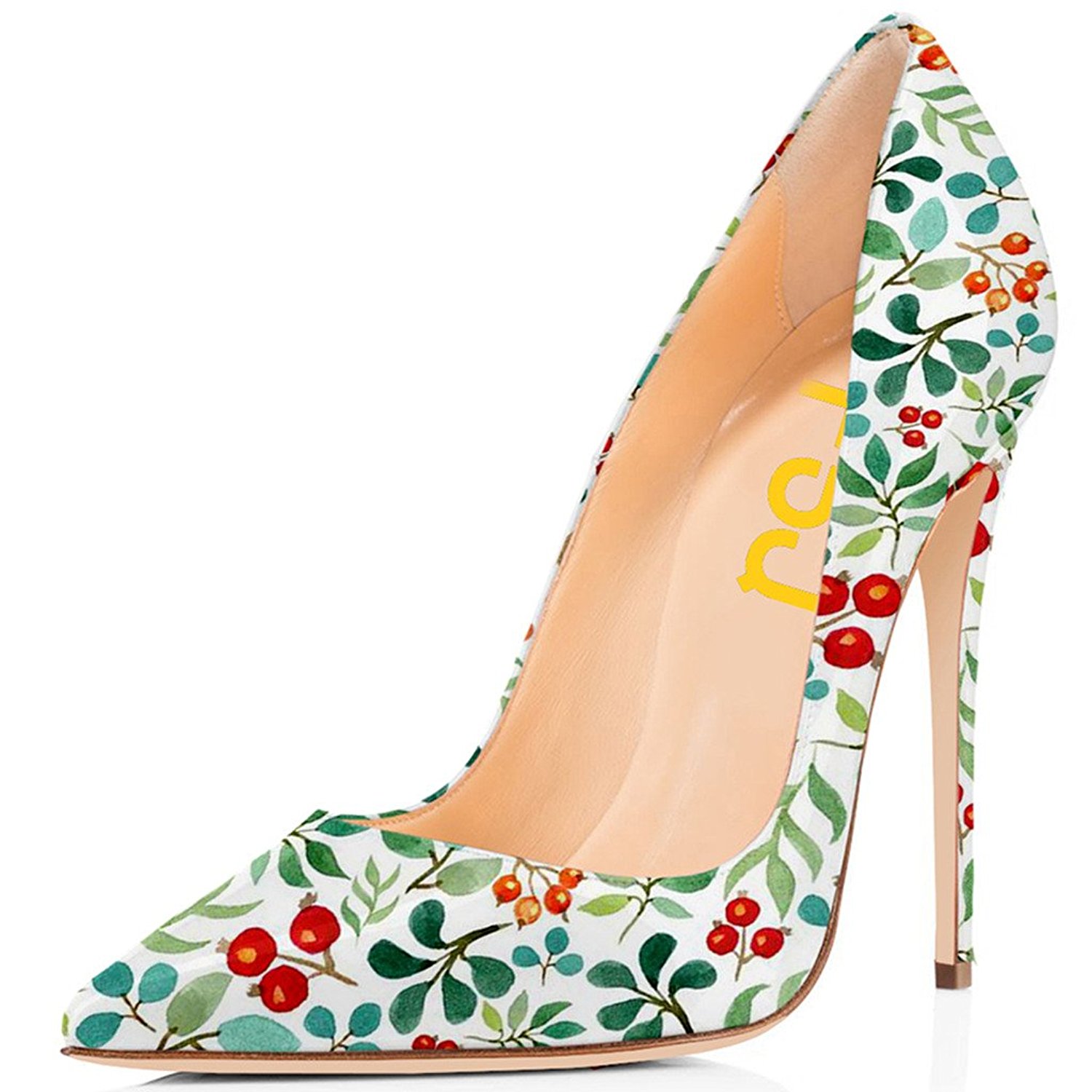 | Name | Green Floral Heels Pointy Toe Stiletto Heels Pumps by FSJ |