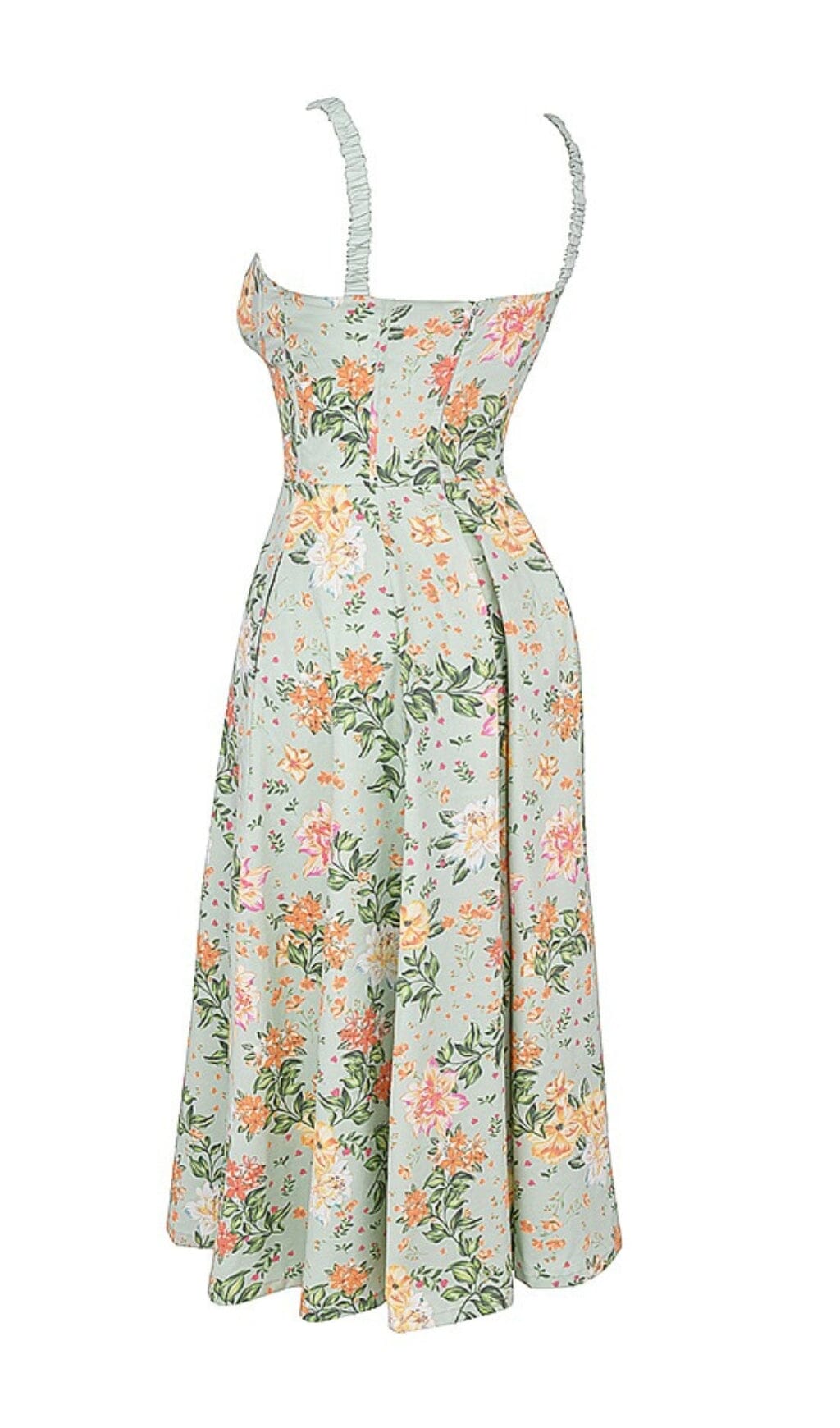 We're loving how the floral prints stand out this season for their beautiful colours and lifelike details. Decorated with pretty blooms. LIGHT JADE PRINT BUSTIER SUNDRESS has a vintage feel and beautifully cut from stretch cotton. The sweetheart neckline features soft cups and fitted with our incredible corsetry boning to snatch the waist for an amazing silhouette. It has a lace up back for pretty detailing and buttoned through the front to wear as open and revealing for your desired fit.
