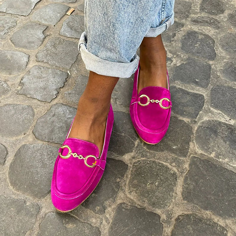 The "Matte Faux Suede Metallic Buckle Decor Loafers" are a stylish and sophisticated footwear option. Theseers feature a matte faux suede upper that adds a luxurious touch to your outfit. The metallic buckle decor on the top adds a trendy and eye-catching detail. With their comfortable and slip-on design. these loafers are perfect for all-day wear. Whether you're dressing up for a formal occasion or adding a touch of elegance to your casual look. these loafers are a versatile and fashion-forward choice.