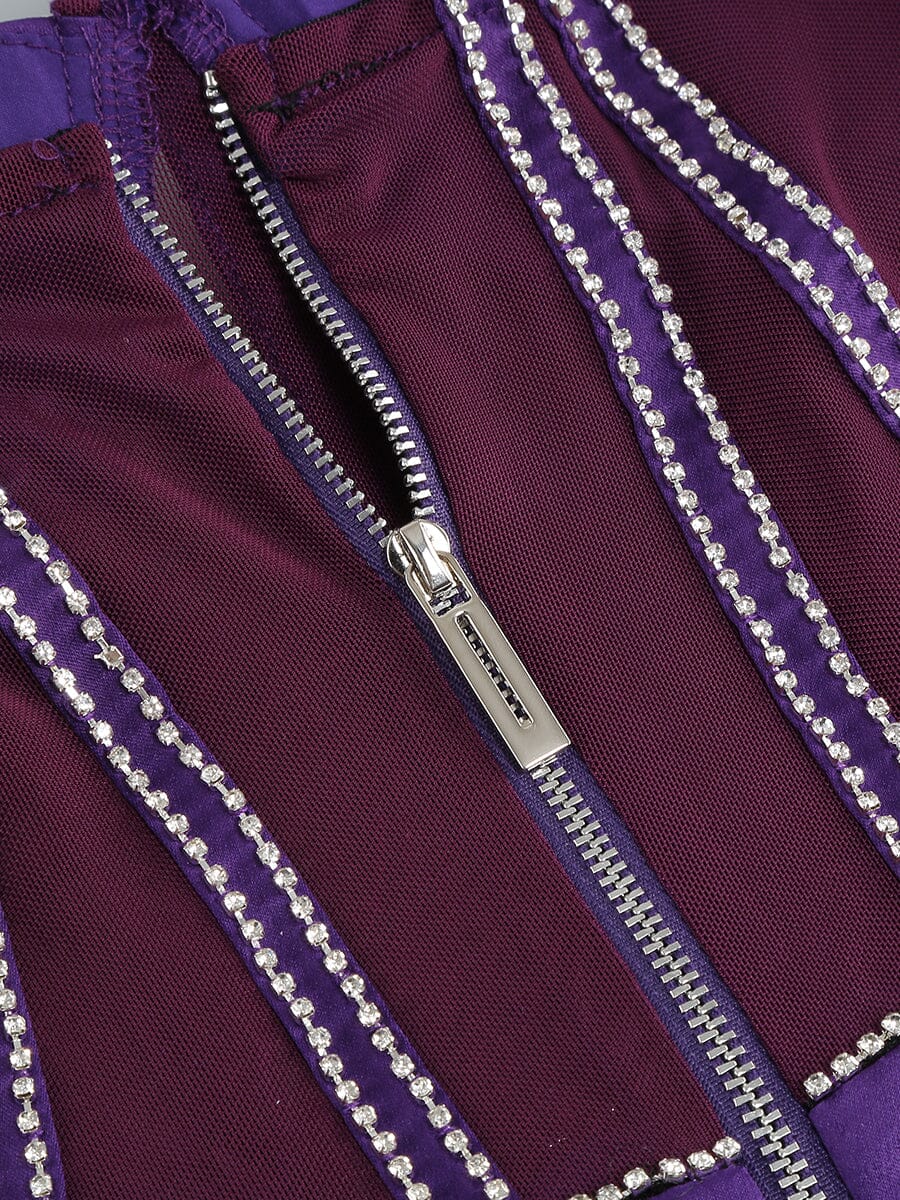 Unleash your inhibitions in our dazzling CORSET Dress. This strapless mini features a semi-sheer paneled corset with a rhinestone trim along the boning. It's complete with a hidden zipper and hook-and-eye closure at the side. Shown here in Royal Purple.