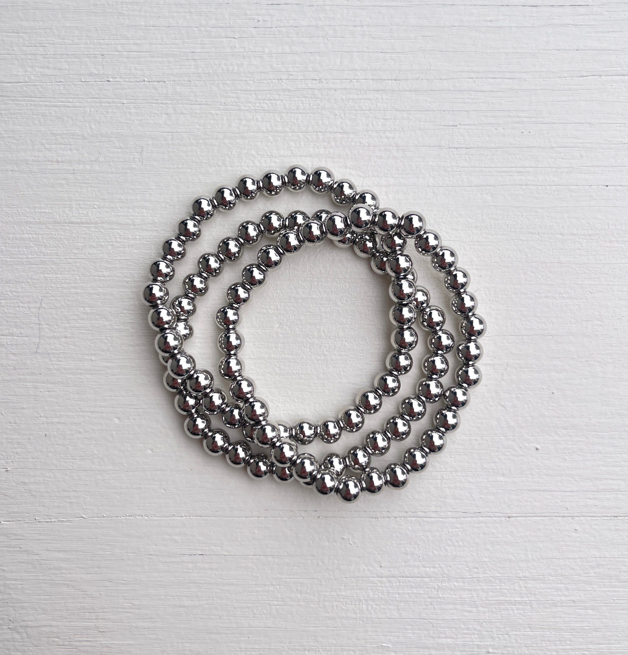 Silver 6mm Beaded Bracelets