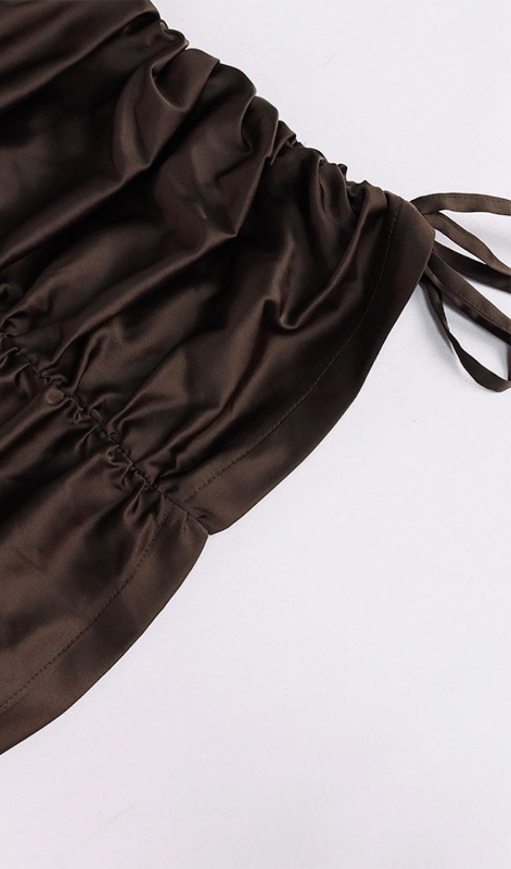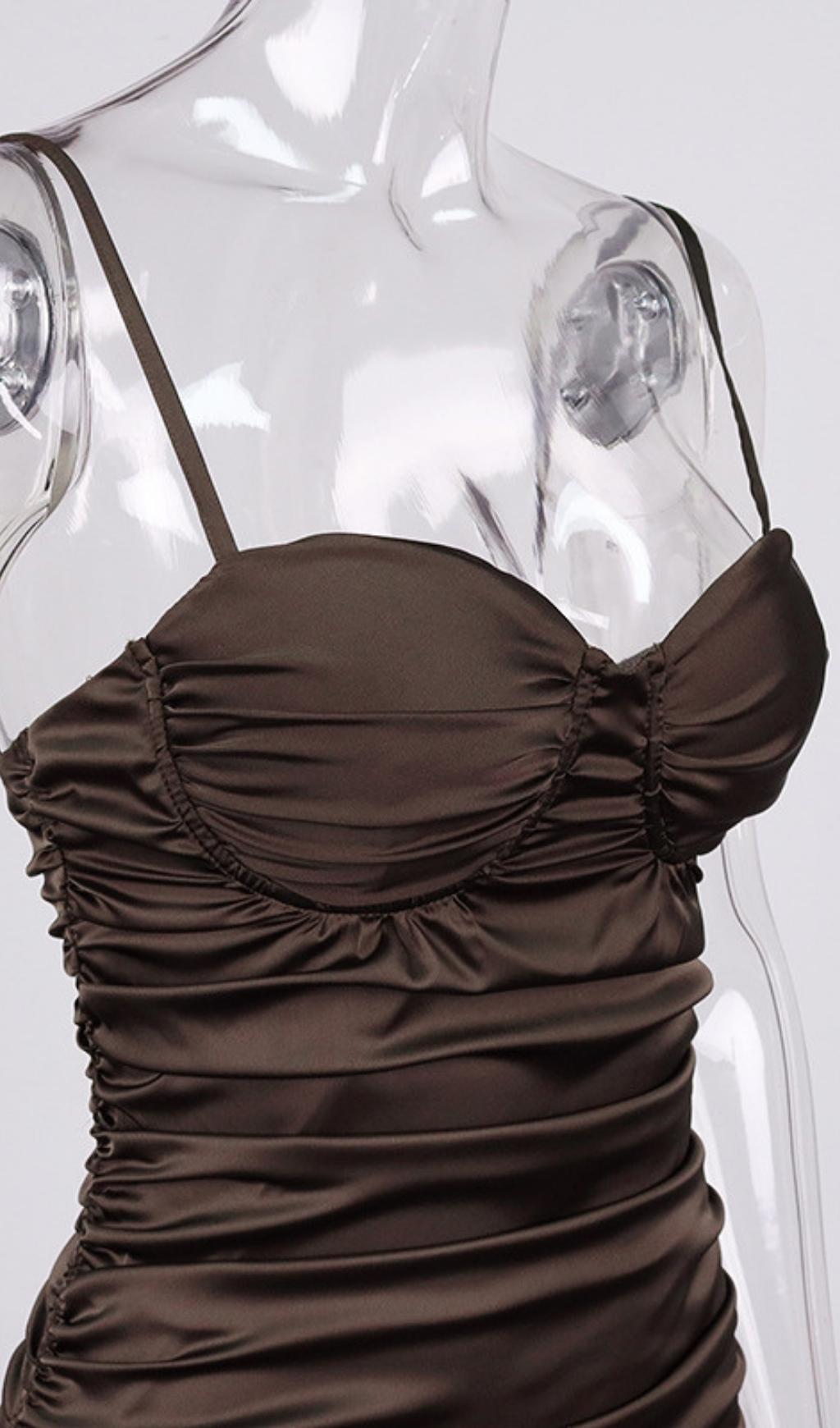 The dress adopts a low neckline suspender design. the back is exposed. and the suture in the middle of the back of the skirt highlights the sexy figure. The corset adopts our special corset frame to ensure maximum support and provide abundant lifting for the chest. The inner layer is lined with elastic woven fabric to prevent slip.