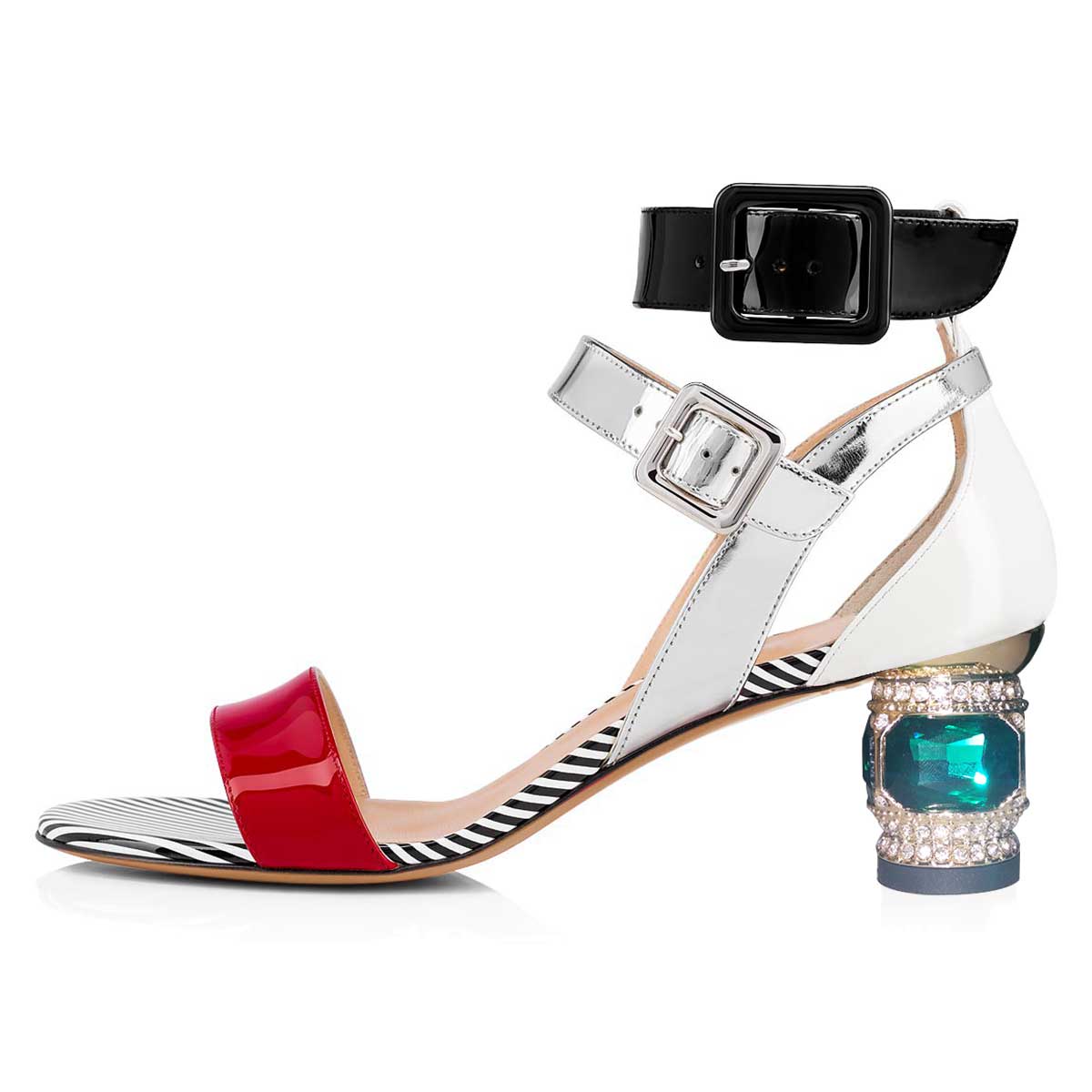 | Name | Multicolor Patent Leather Buckle Rhinestone Chunky Ankle Strap Sandals |