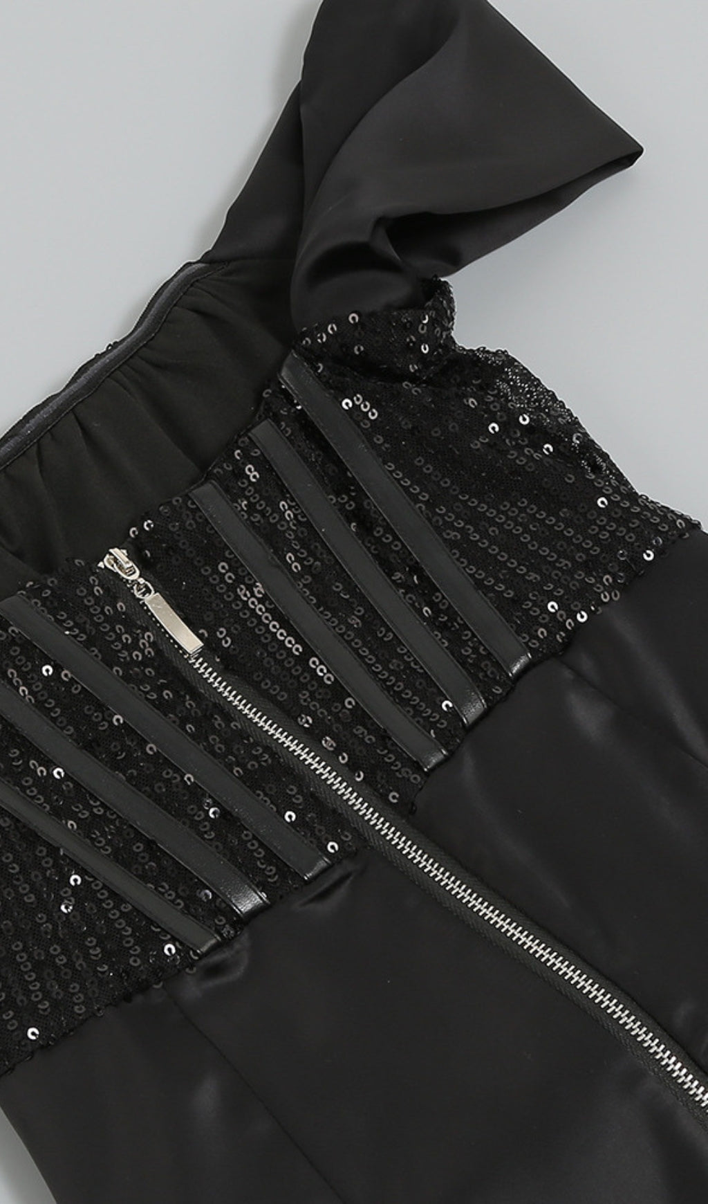 The compliments won't stop rolling in when you're wearing the Nadia Off Shoulder Mini Dress! Medium-weight. sparkly black metallic fabric shines across a round neckline. long sleeve and mini length bodice. You'll be dancing through the night in our mini party dress.Pair this party dress with strappy heels for a super sexy party look!
