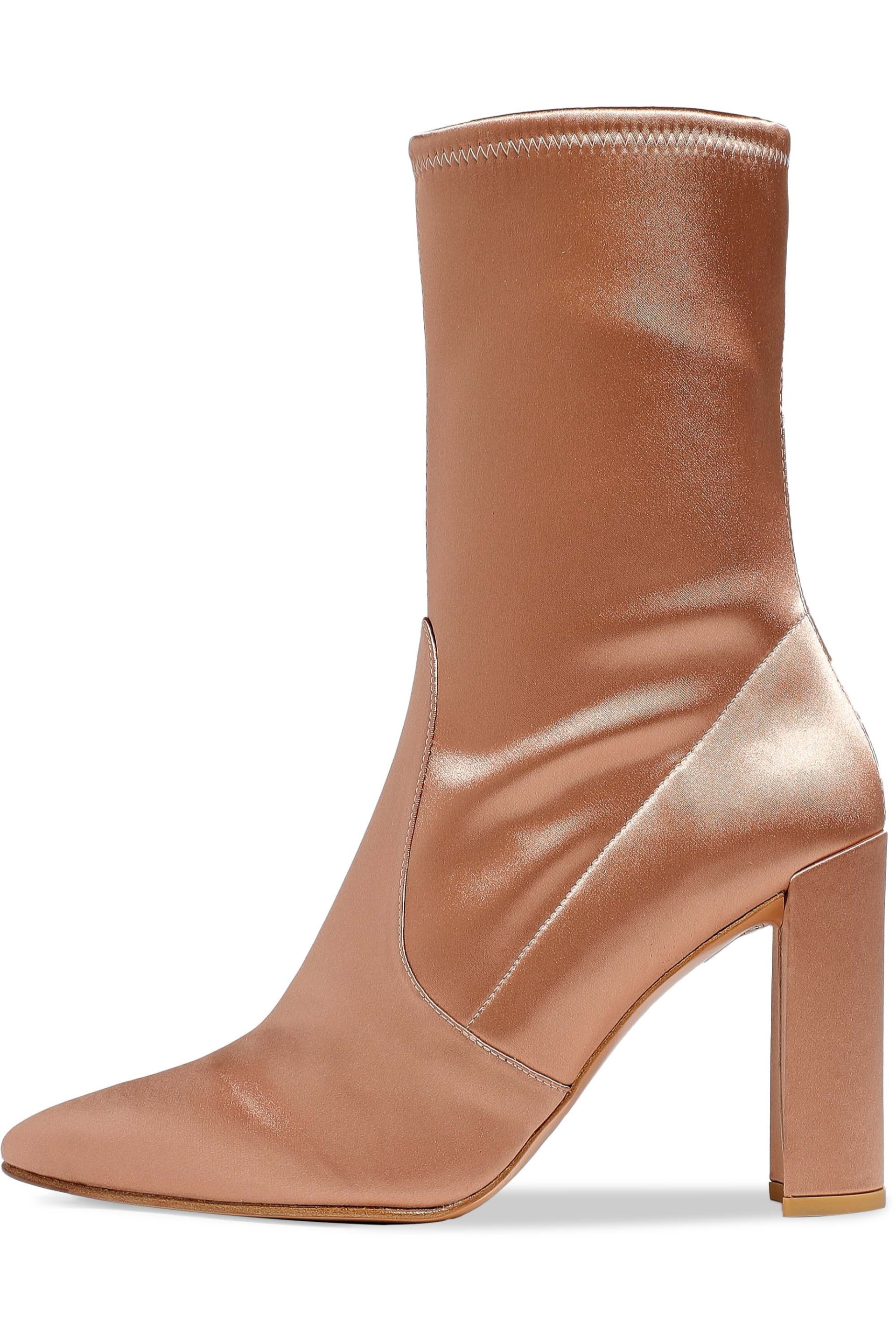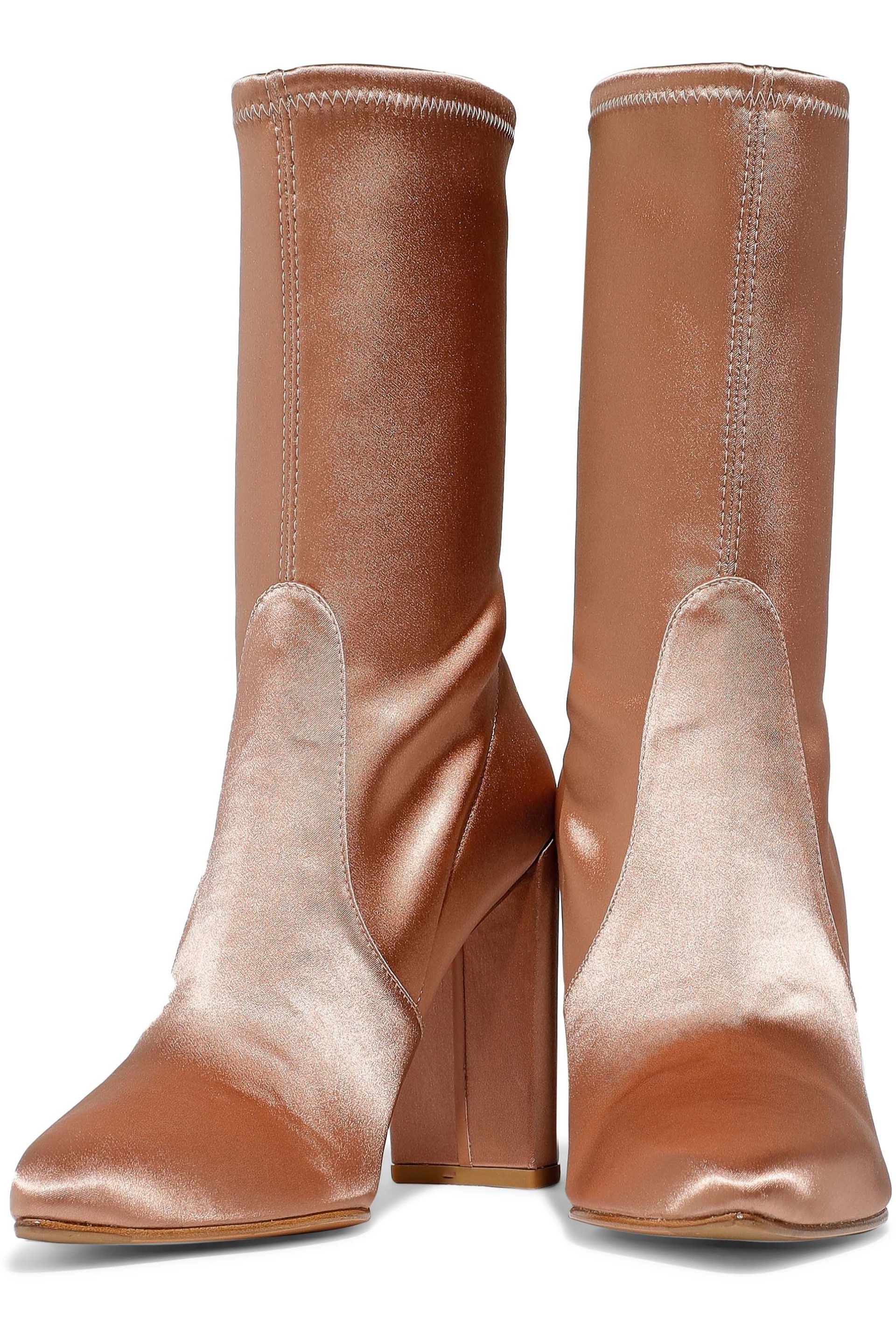 | Name | Women's Satin Stretch Boots Chunky Heel Sock Booties in Champagne |