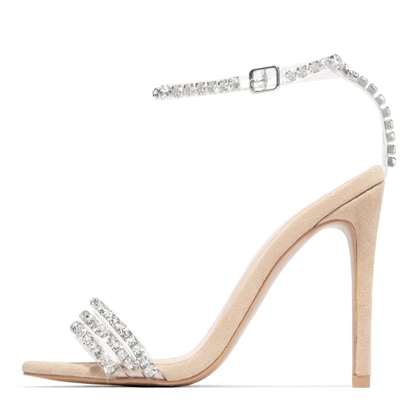 | Name | Nude Vegan Suede transparent Ankle Strap Sandals Rhinestone Stiletto Heel Sandals |