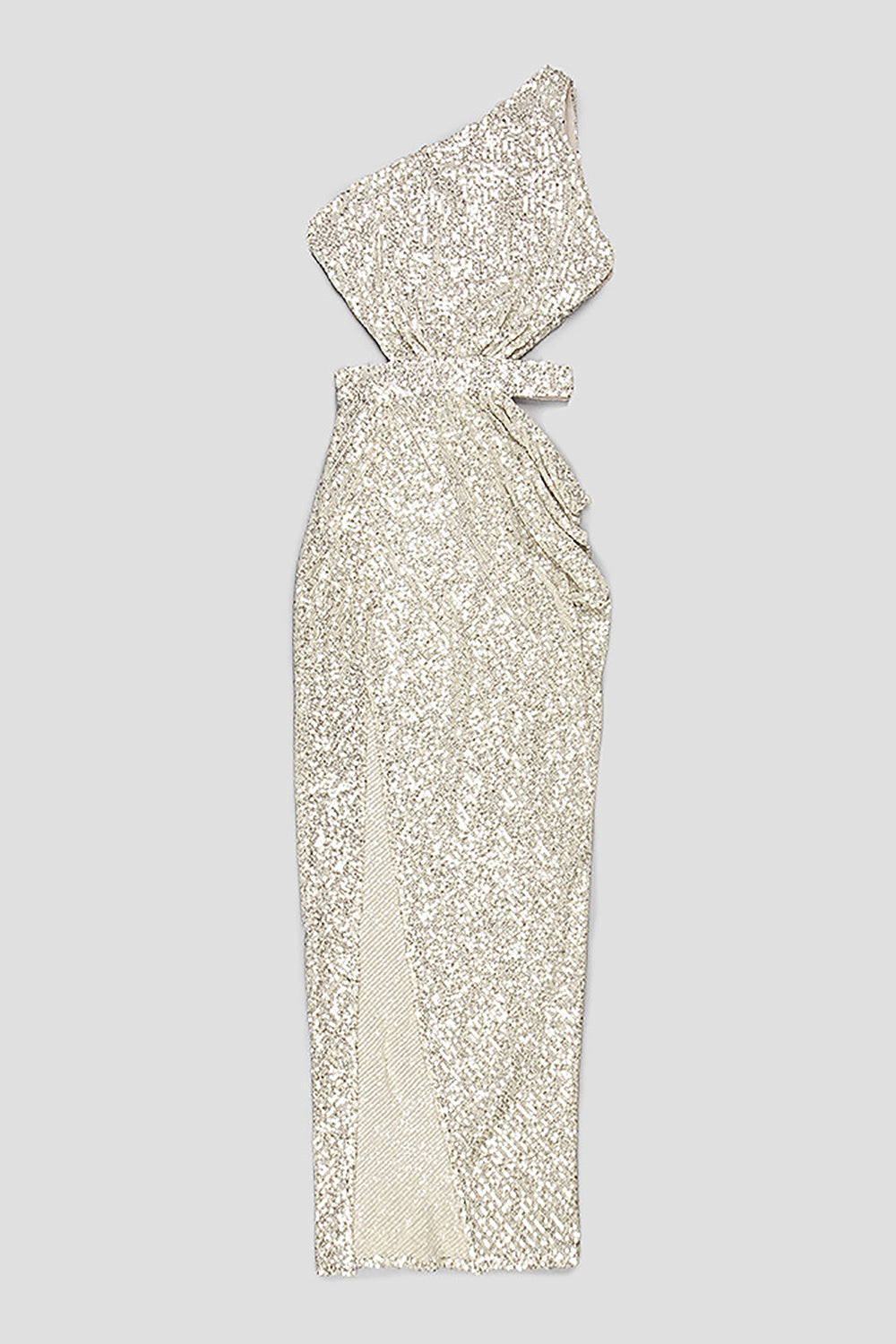 One Shoulder SequinS Cut Out Split Maxi Dress