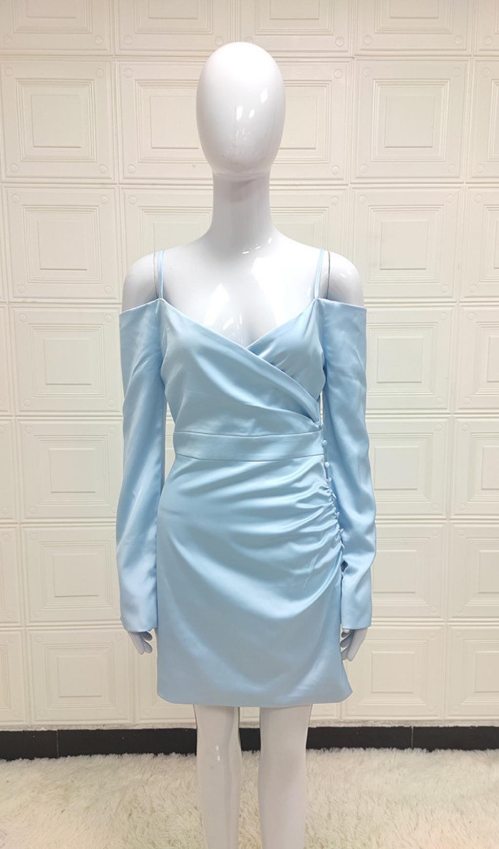 The satin fabic creates a romantic look atop this stunning homecoming dress! The special baby blue makes this skirt irreplaceable. This gorgeous piece features a mini length and delicate with off shoulder. Pair this party dress with strappy heels for a super sexy party look!