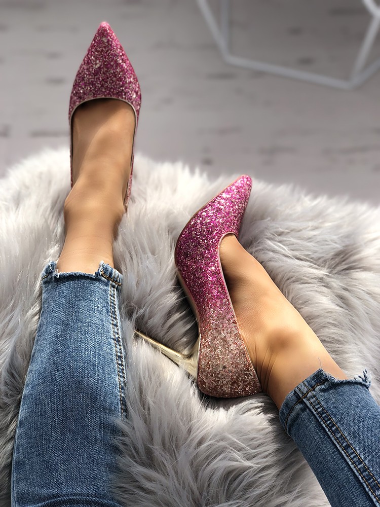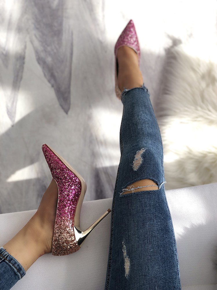 | Name | Pink and Gold Glitter Stiletto Heels Evening Shoes |