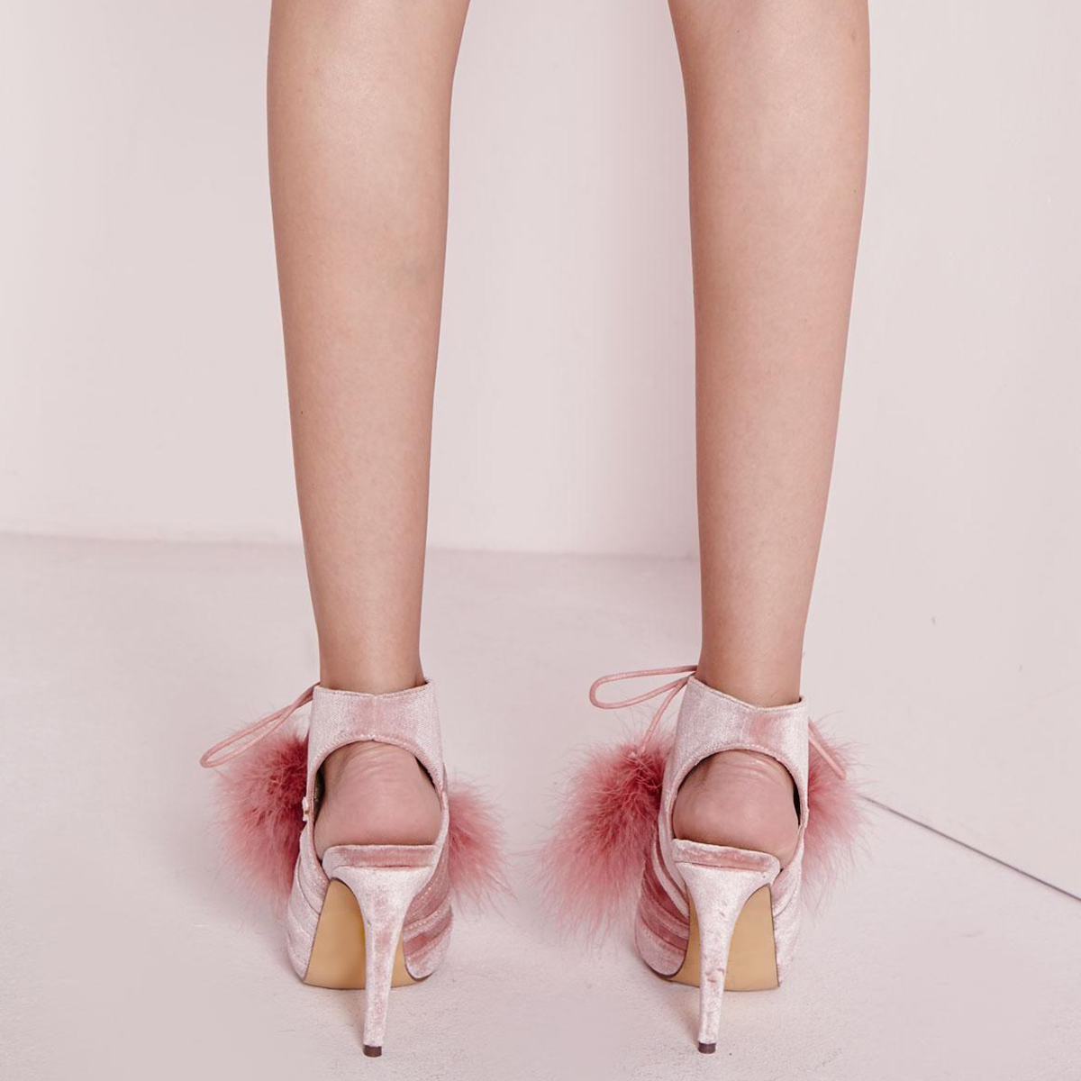 | Name | Pink Peep Toe Booties Lace up Slingback Shoes Velvet Boots |