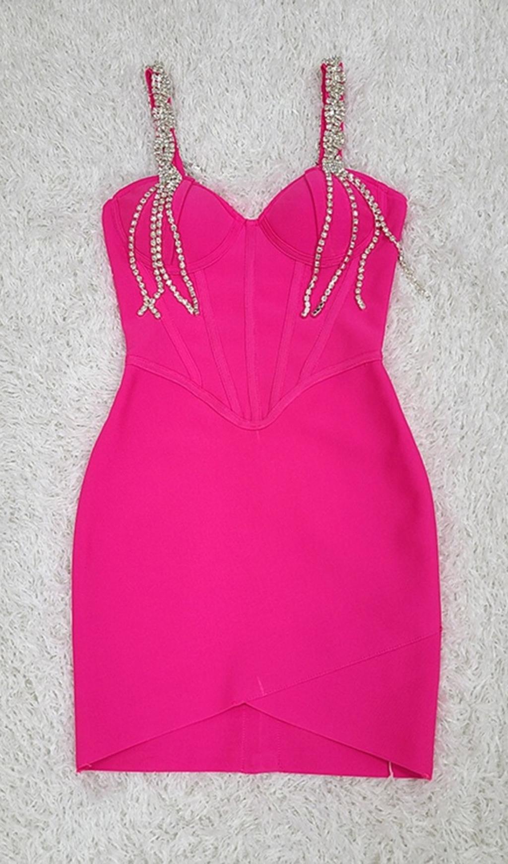 It's the ruching for us. Our pretty. feminine rhinestone corset mini dress that'll hug your curves.In a gorgeous royal pink hue. detailed with delicate rhinestone! Featuring a built-in bodysuit. this dress is sure to have you sparkle all night long.Pair with your favorite heels and you'll be ready for date night.