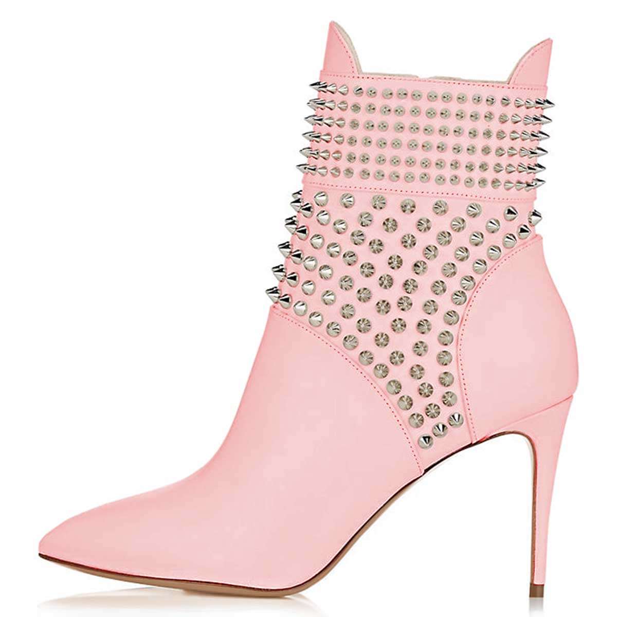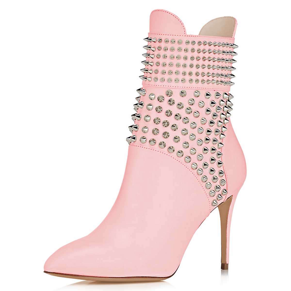 Elevate your style with these Pink Studs Shoes Stiletto Heel Ankle Boots. Featuring a sleek stiletto heel and eye-catching stud embellishments. these boots are perfect for making a bold fashion statement.