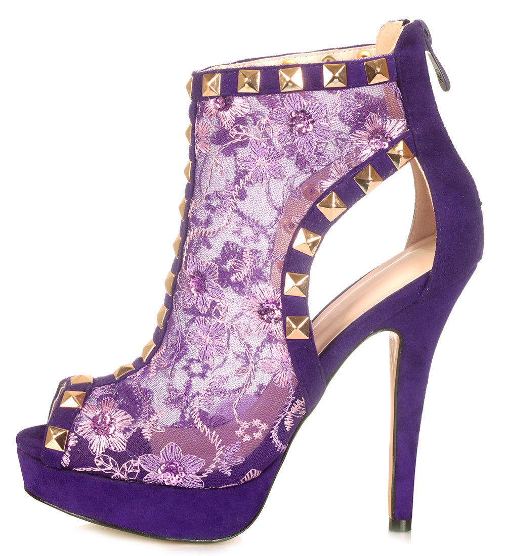 | Name | Purple Peep Toe Lace Heels Platform Ankle Boots with Rock Studs |