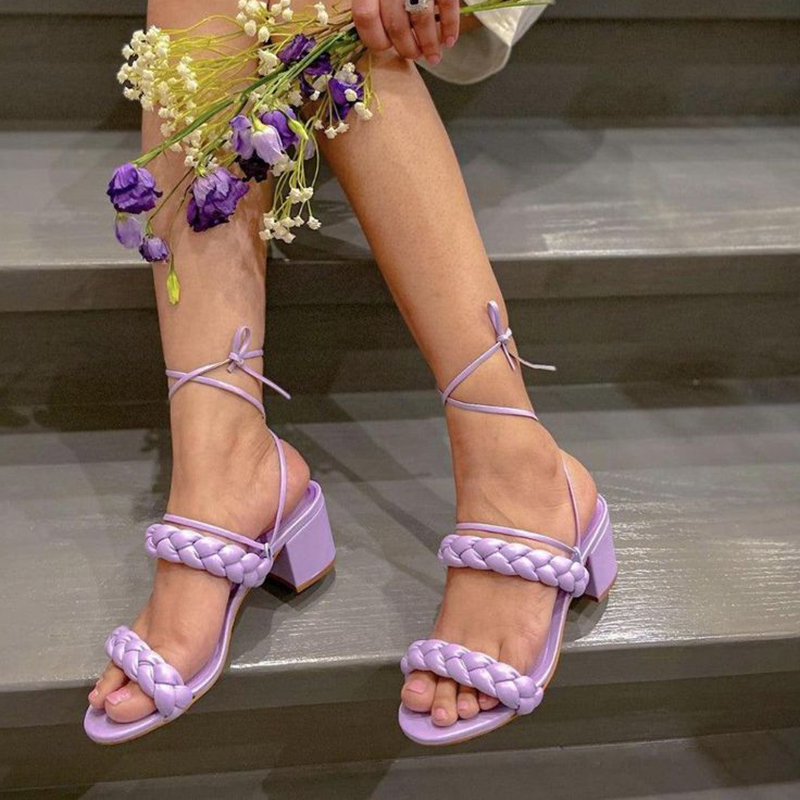| Name | Purple Open Toe Braided Sandals Women's Classic Block Heels Summer Office Shoes |