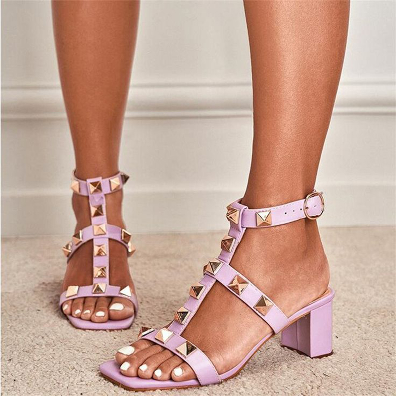 | Name | Purple Patent Block Heels Square Toe Straps Sandals Office Studs Shoes |