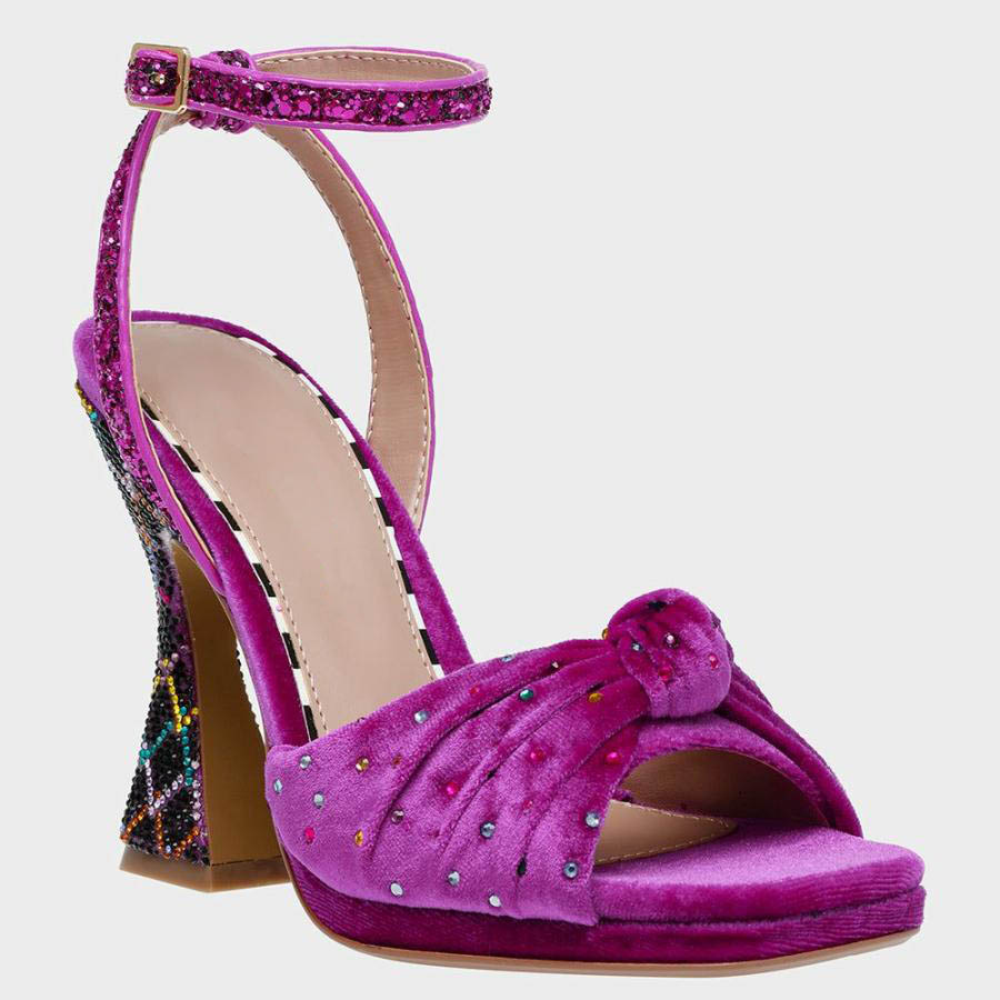 | Name | Purple Square Toe Velvet Flared Heeled Sandals with Rhinestone |