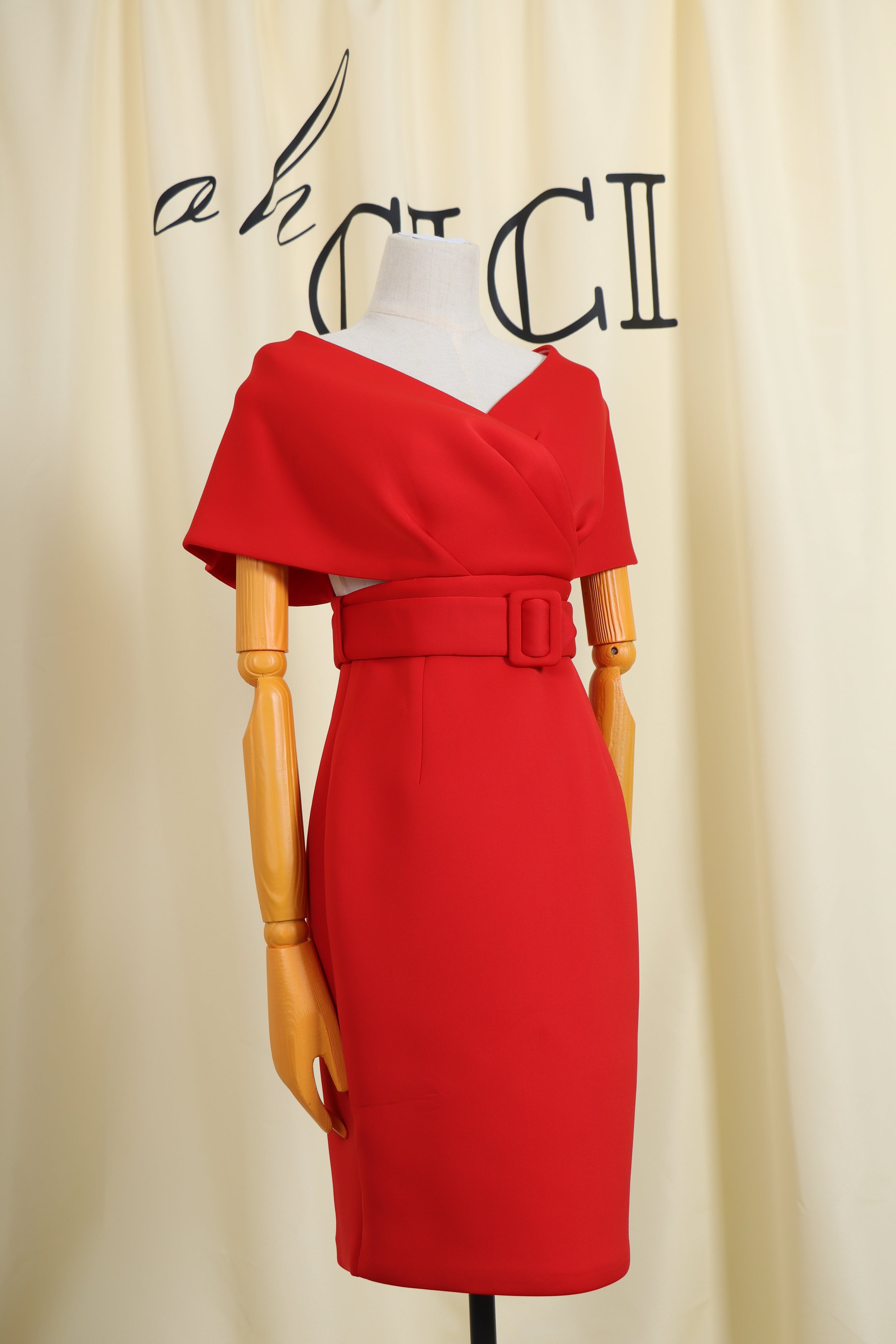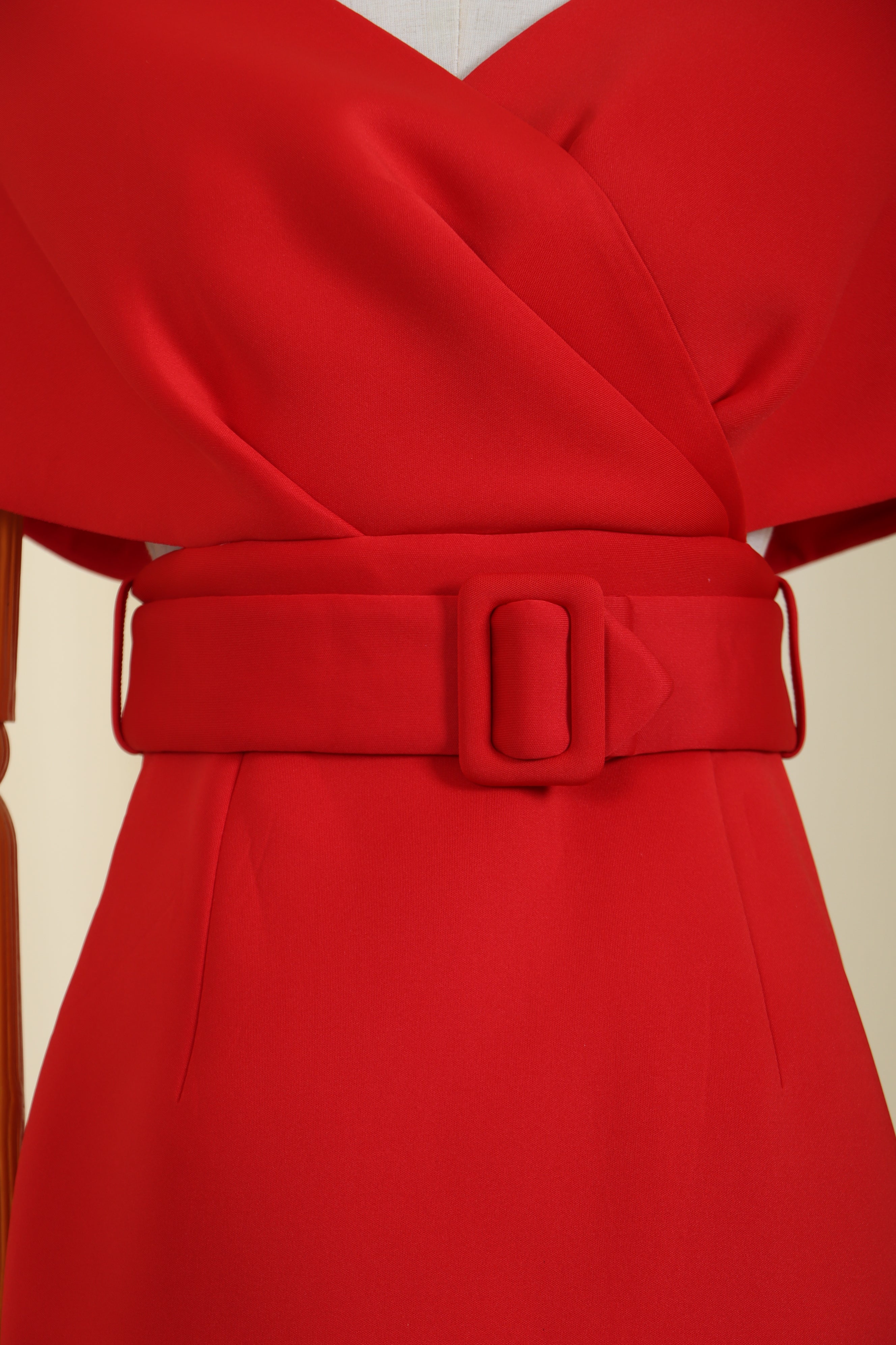 Update your wardrobe with our Red Off Shoulder V Neck Bodycon MidiDress.The waist belt is designed to tighten your waist and show off the perfect shape.Pair with your favorite heels and you'll be ready for date night.