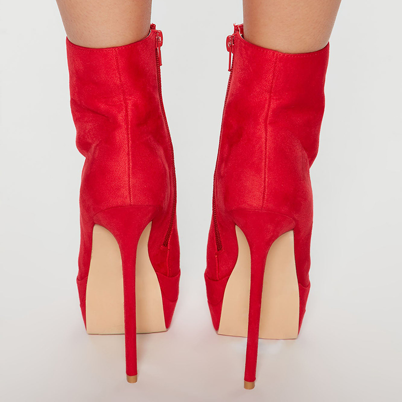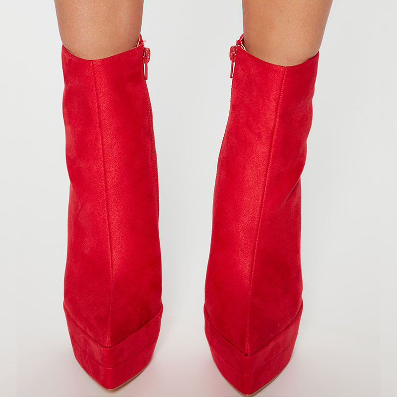 | Name | Red Platform Ankle Boots Pointed Zipper Heel Classic Vegan Suede Booties |