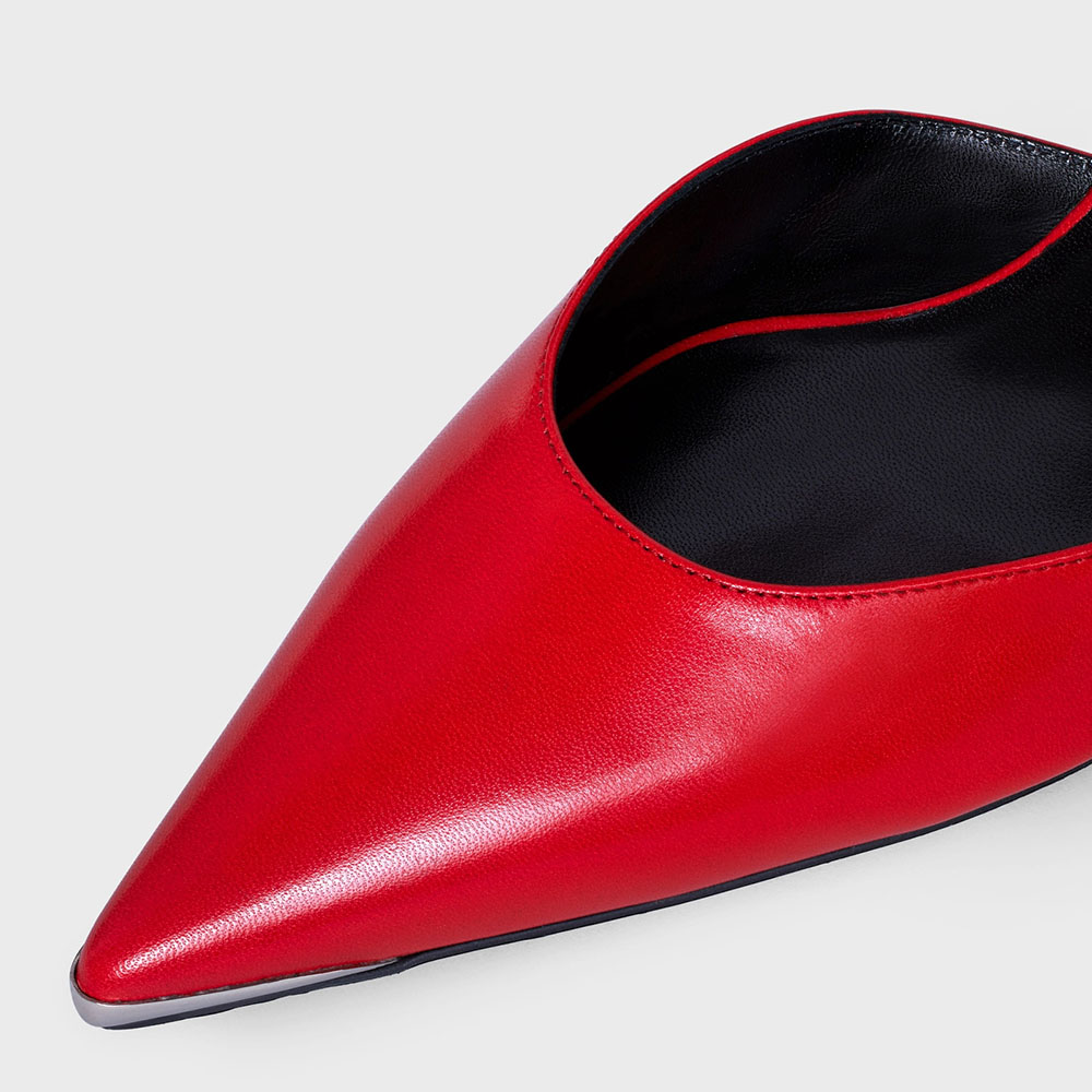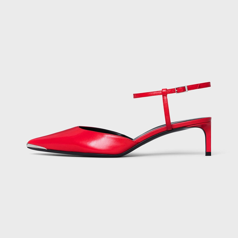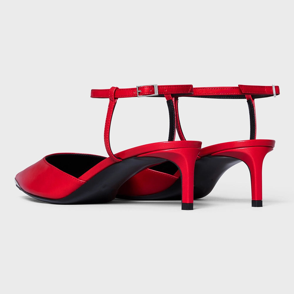 Introducing our elegant Red Pointed Toe Mules. These classic ankle strappy kitten heel pumps offer both style and comfort. perfect for any occasion.