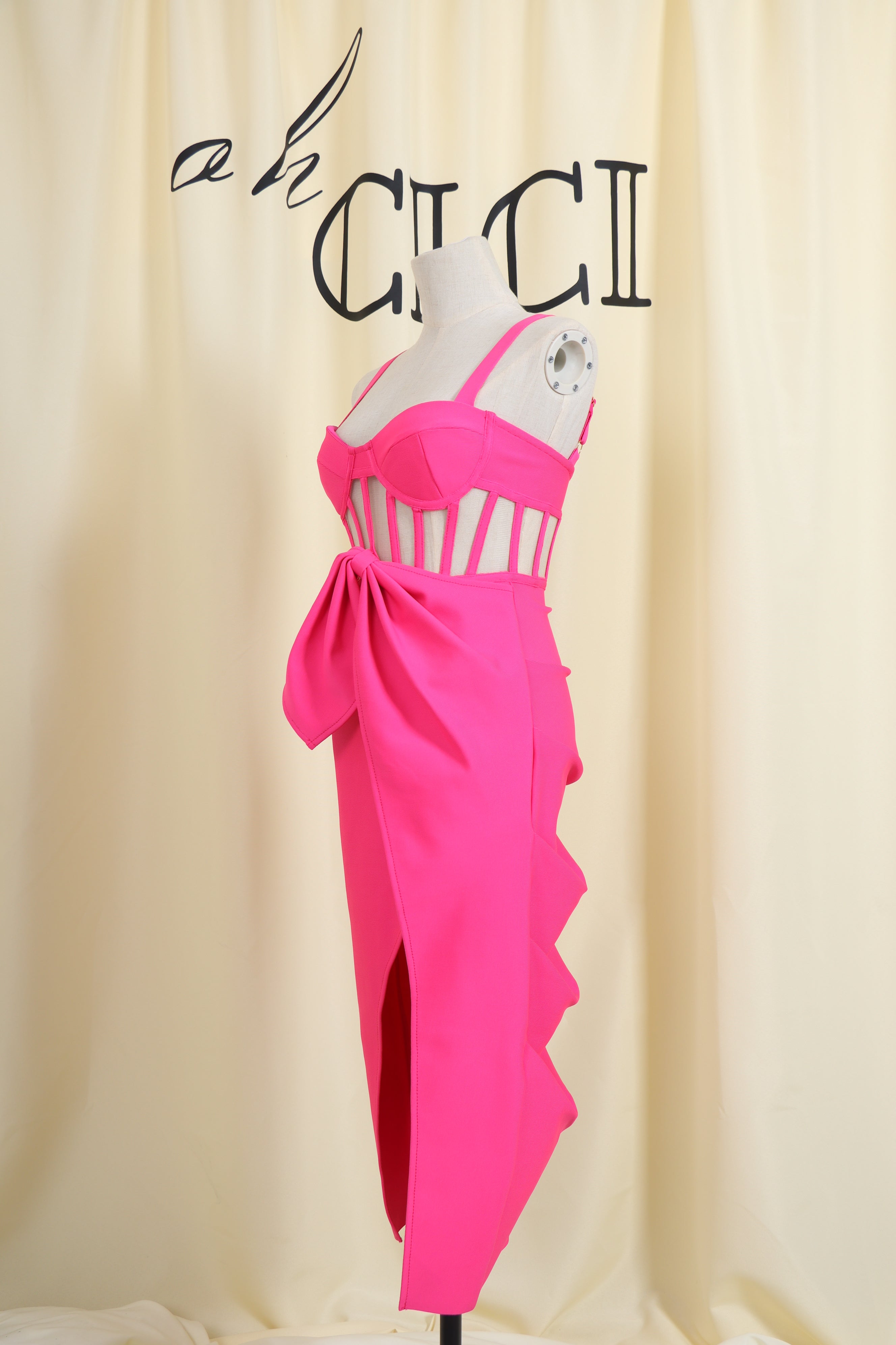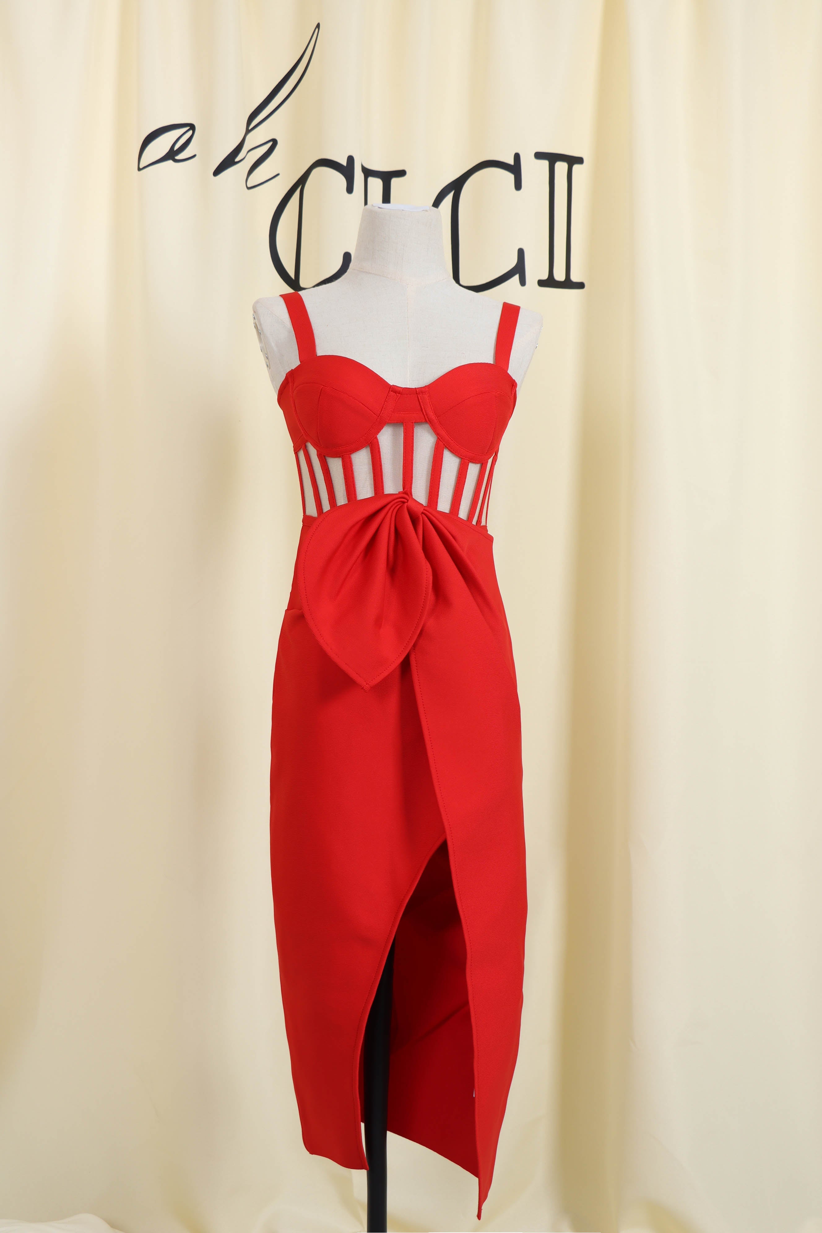 Update your new season wardrobe with our SlitMidi Bandage Dress. The dressis constructed from our ever-famous stretch bandage fabric to caress your curves and create a perfect silhouette.Pair with your favorite heels and you'll be ready for date night.